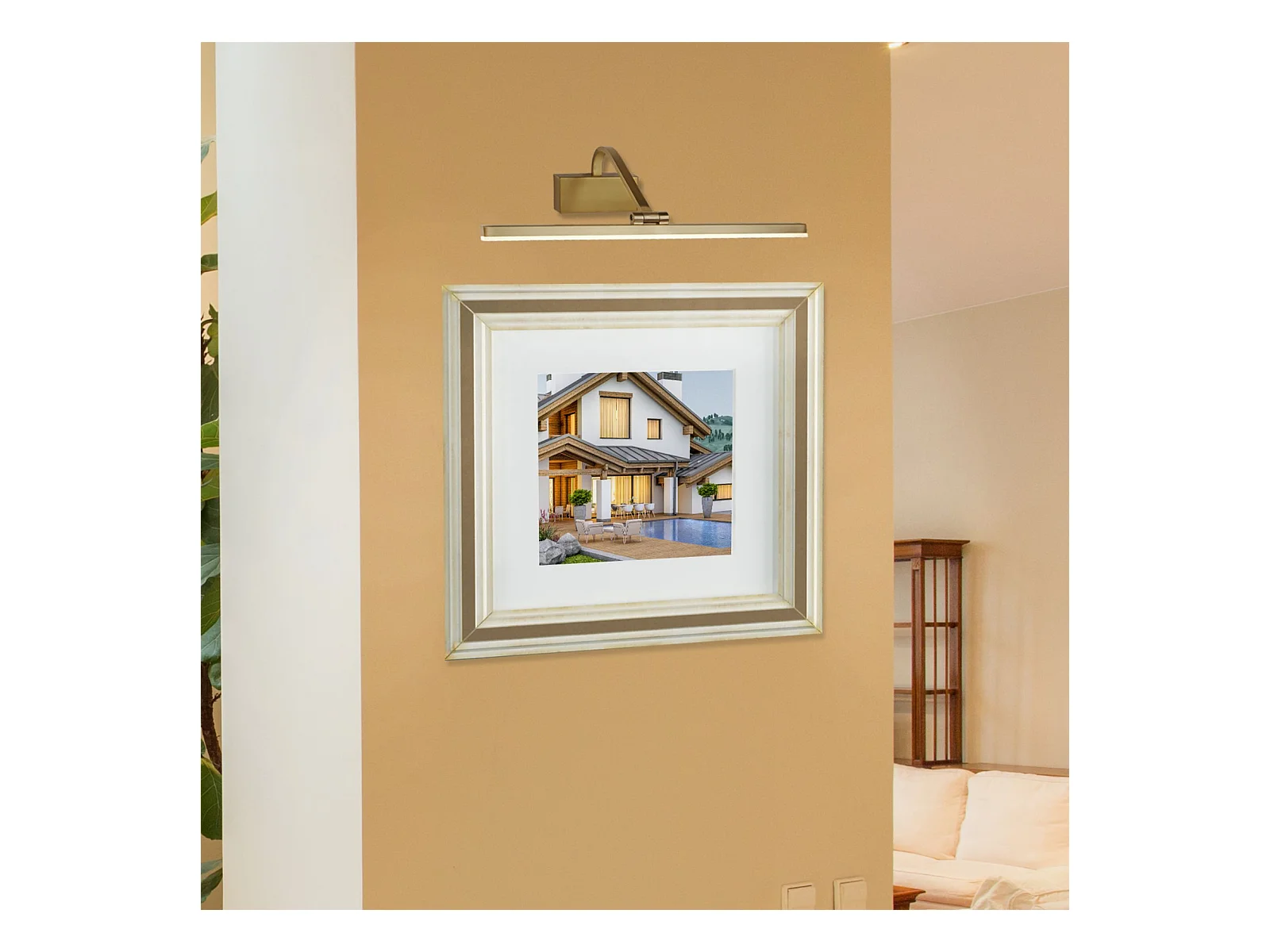 Searchlight Picture Lights - Applique da parete con 1 luce LED integrata, oro spazzolato