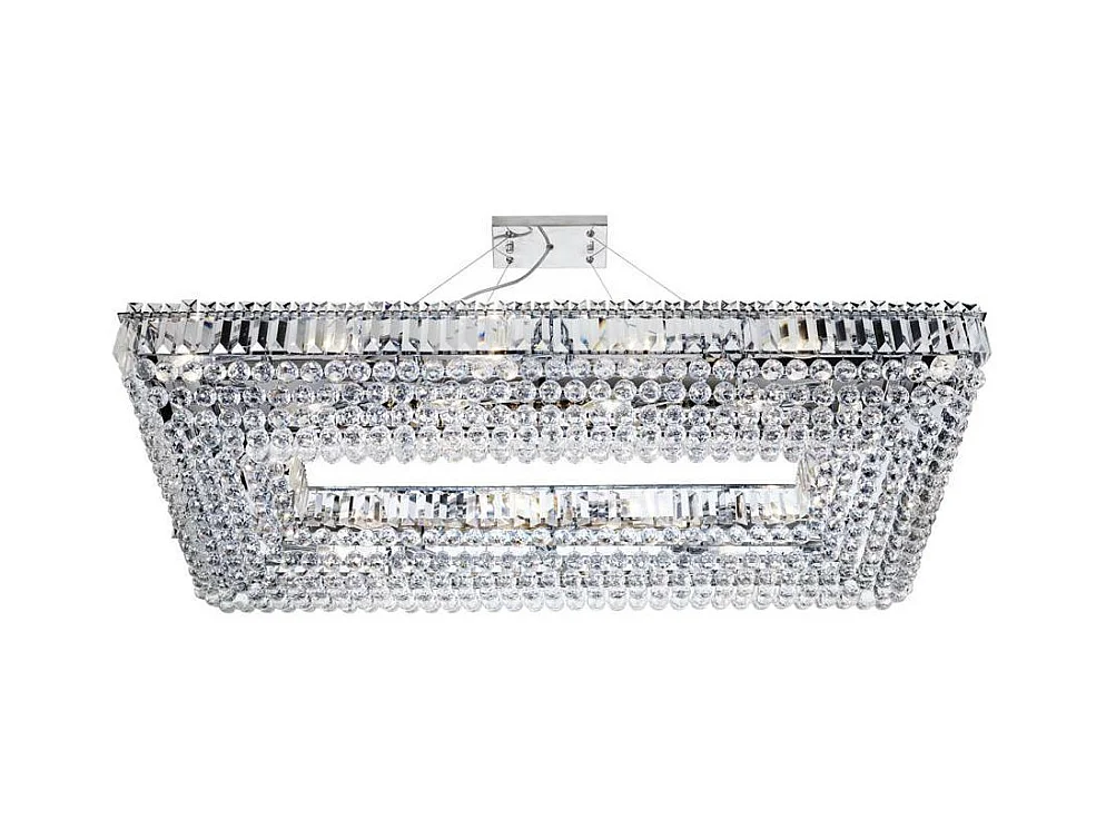 Searchlight Vesuvius - Lampada a sospensione a 24 luci cromata con cristalli - Cornice rettangolare, E14