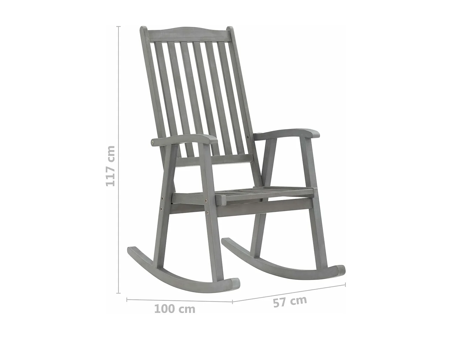Sedia a Dondolo con Cuscini Grigia in Legno Massello di Acacia