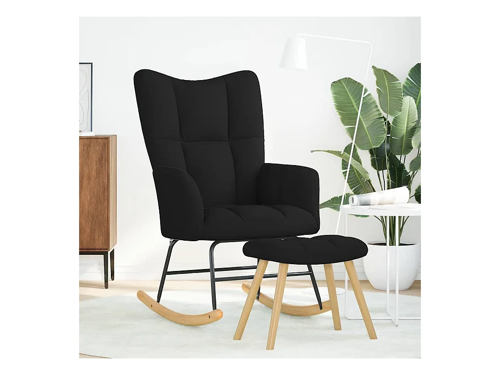 Sedia a dondolo con poggiapiedi Tessuto nero