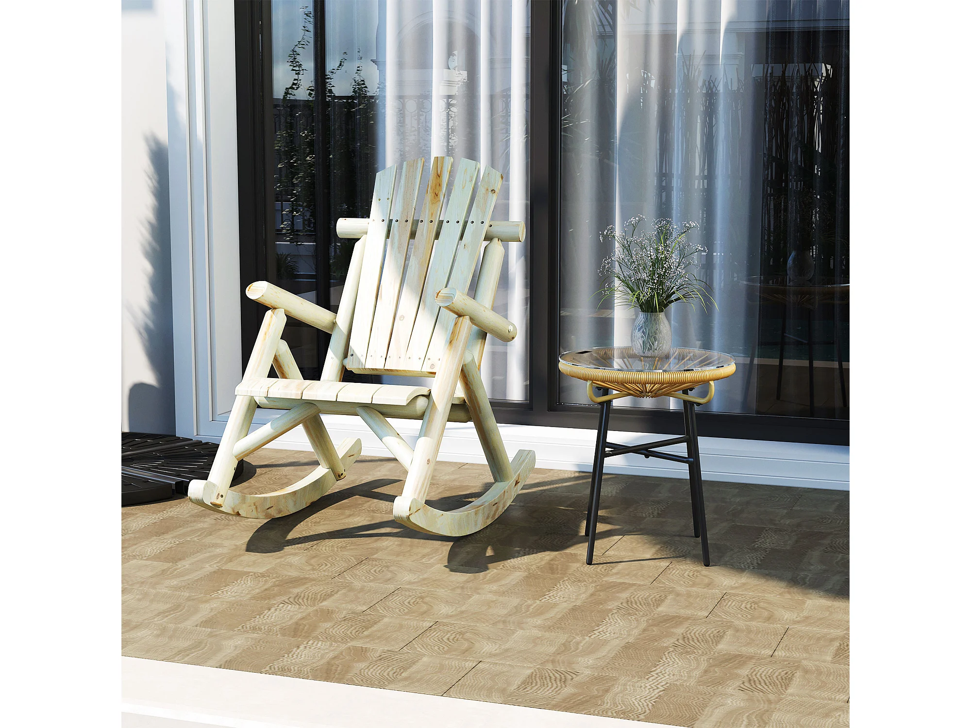 Sedia a dondolo da giardino ergonomico legno color legno