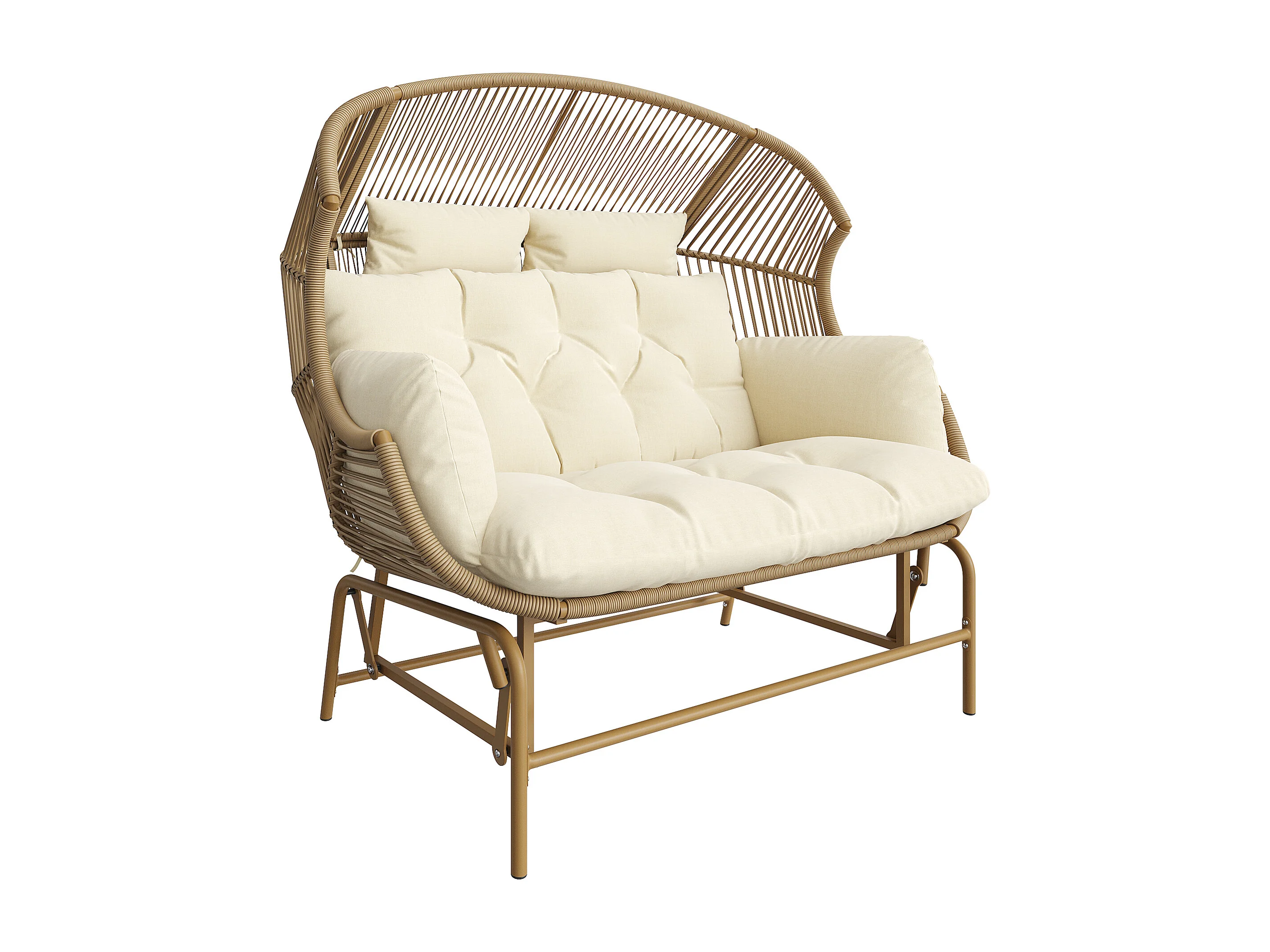 Sedia a dondolo doppia per giardino 145x85x143cm - Sedia a dondolo - Rattan PE + ferro + tessuto impermeabile - Naturale
