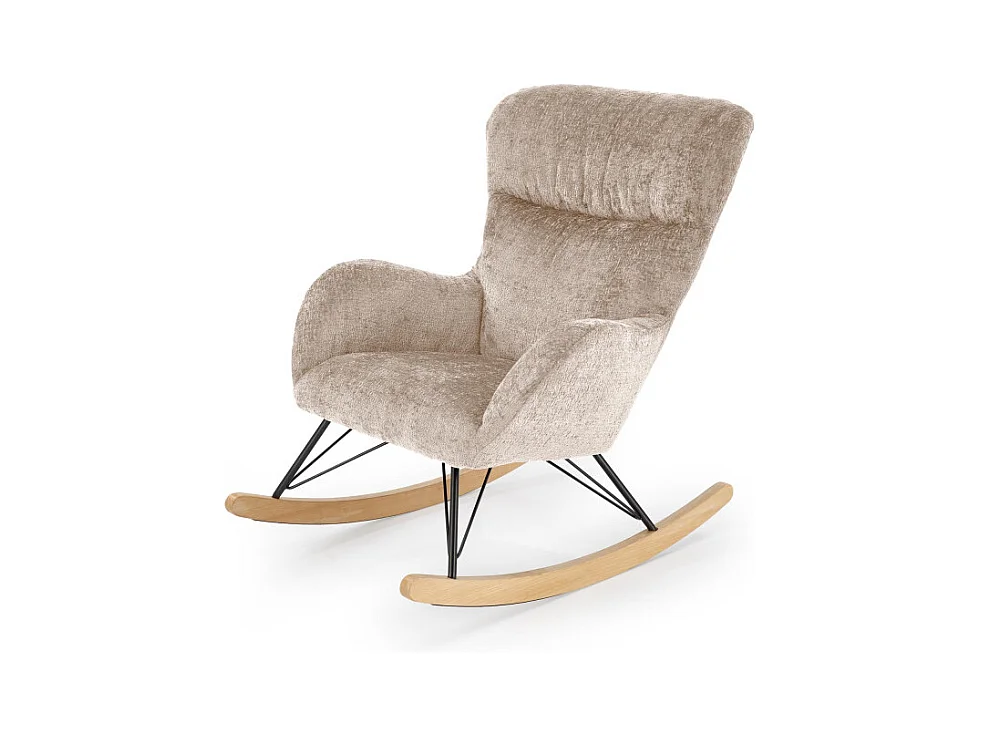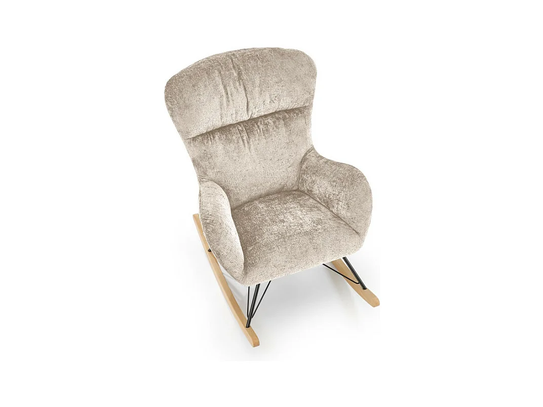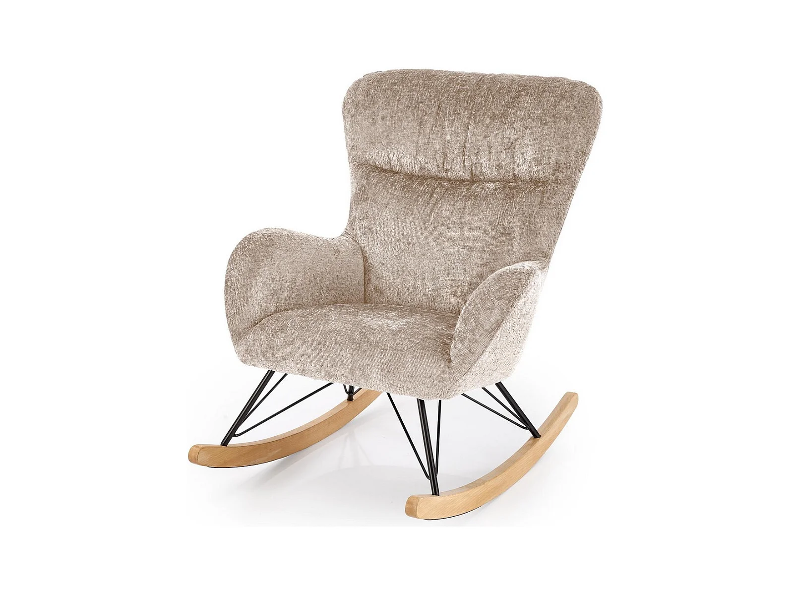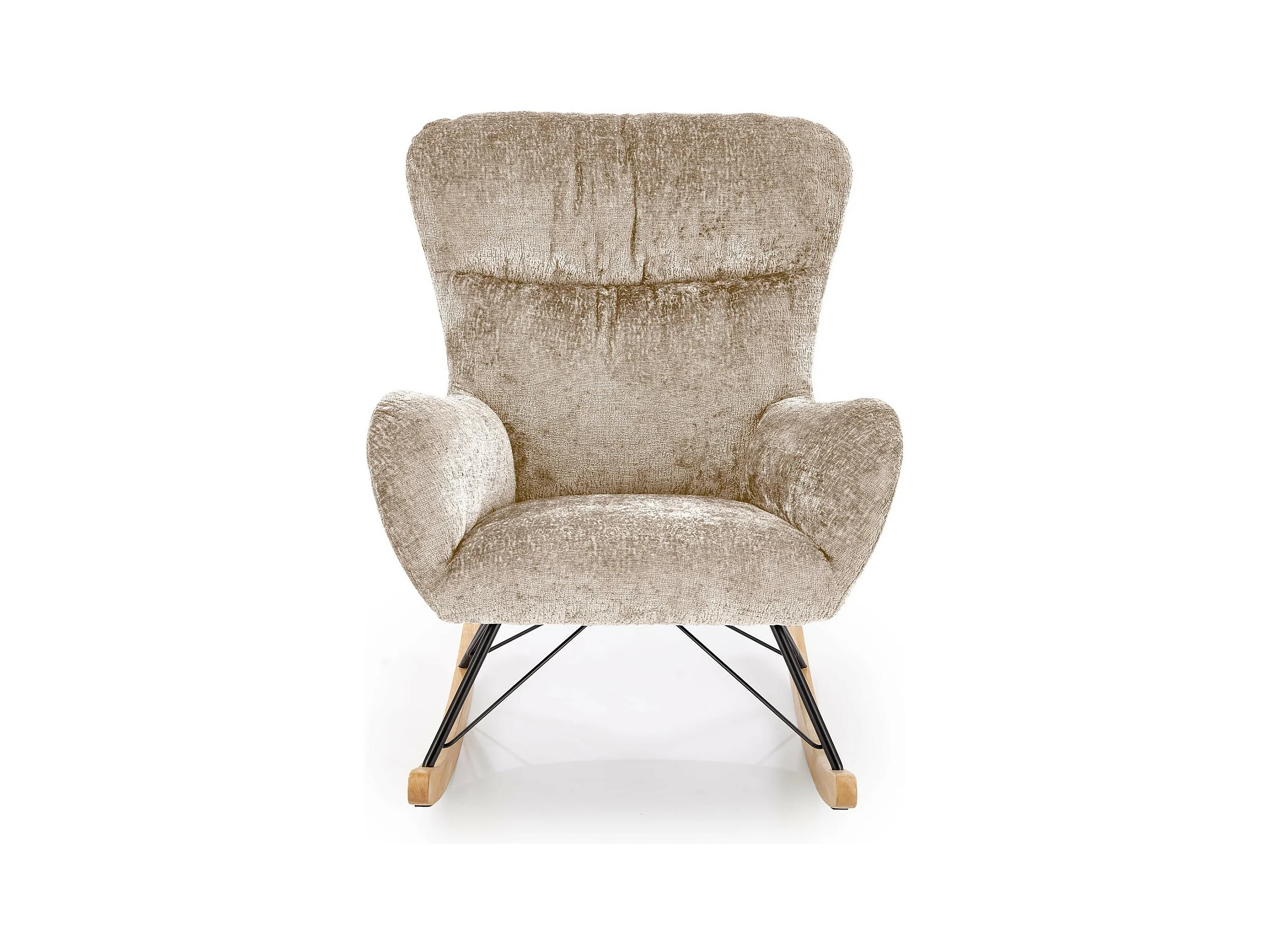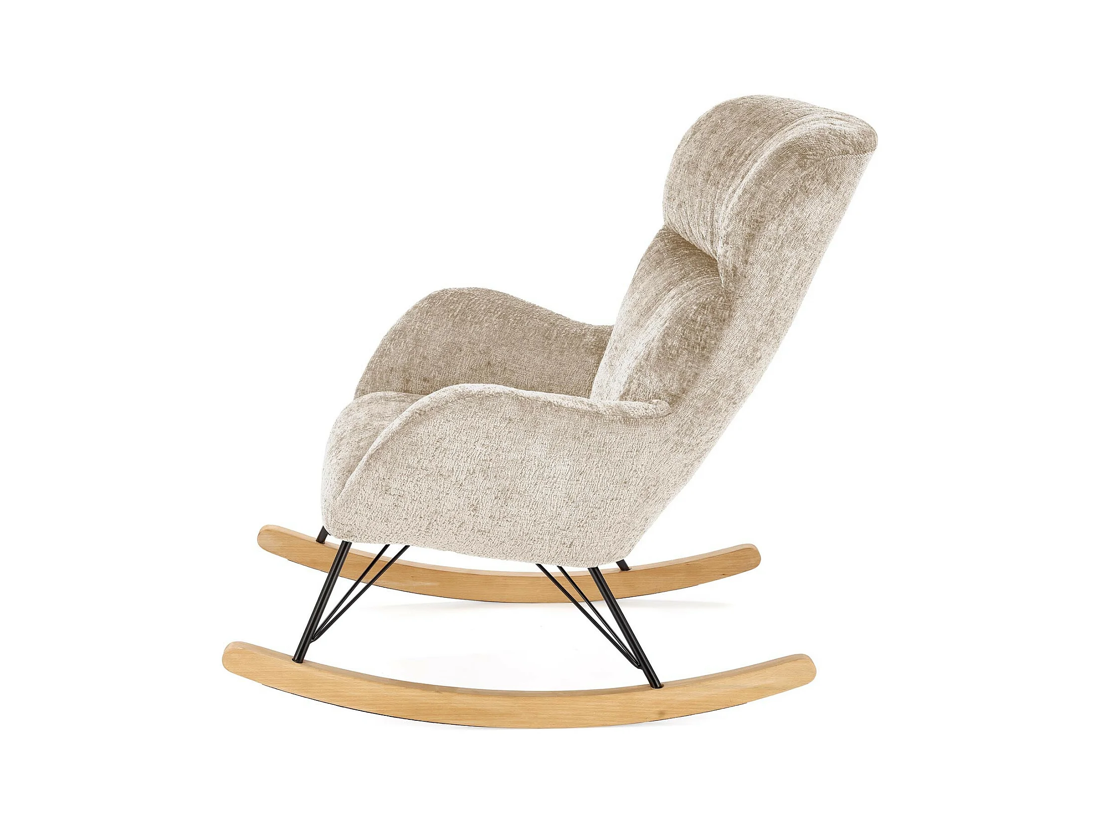 Sedia a dondolo in tessuto riccio con base in metallo e legno massiccio URIELL 2
