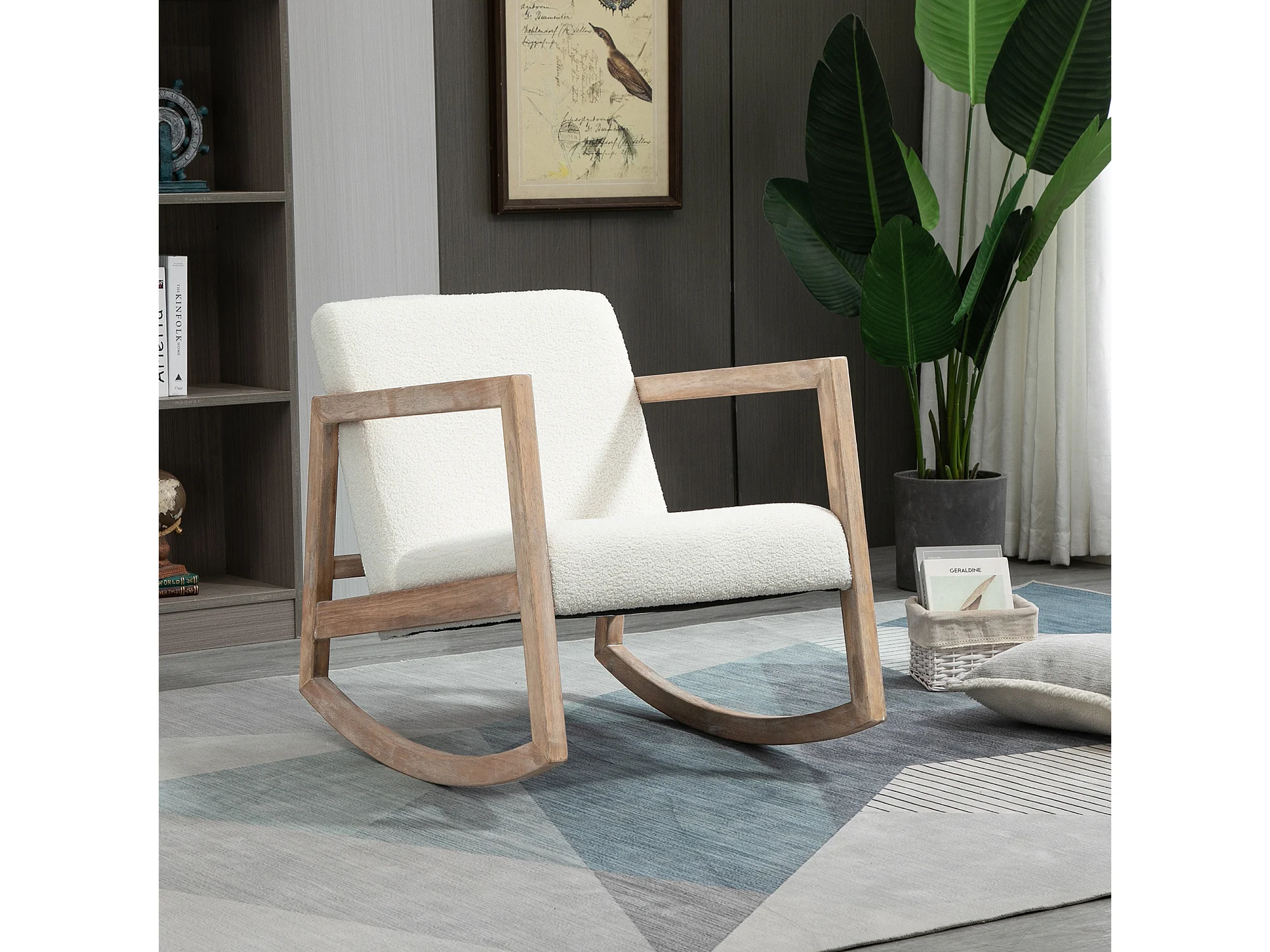 Sedia a dondolo in tessuto riccio con base in metallo e legno massiccio URIELL 2
