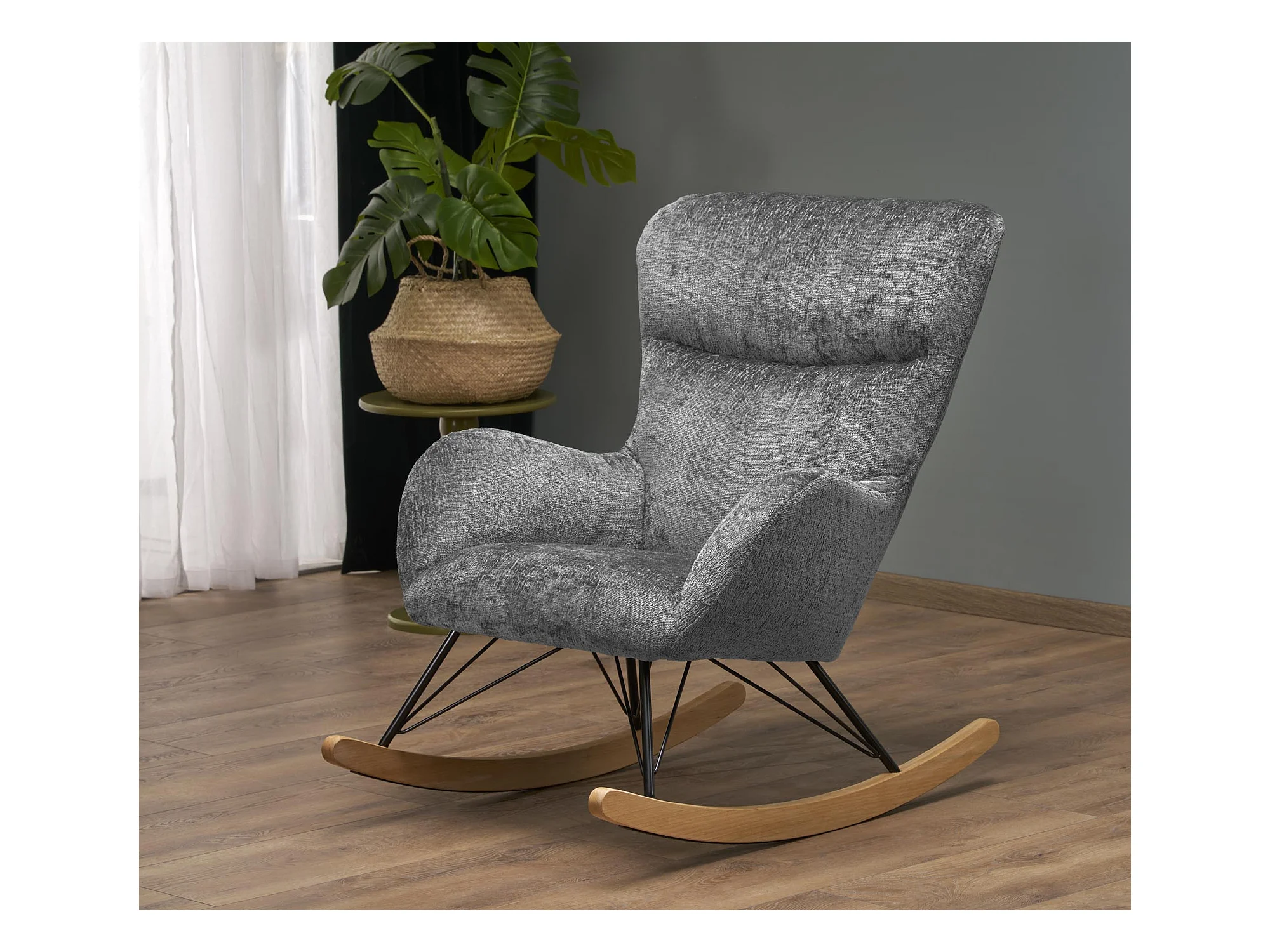 Sedia a dondolo in tessuto grigio con gambe in legno massiccio e metallo nero Heather