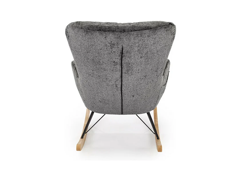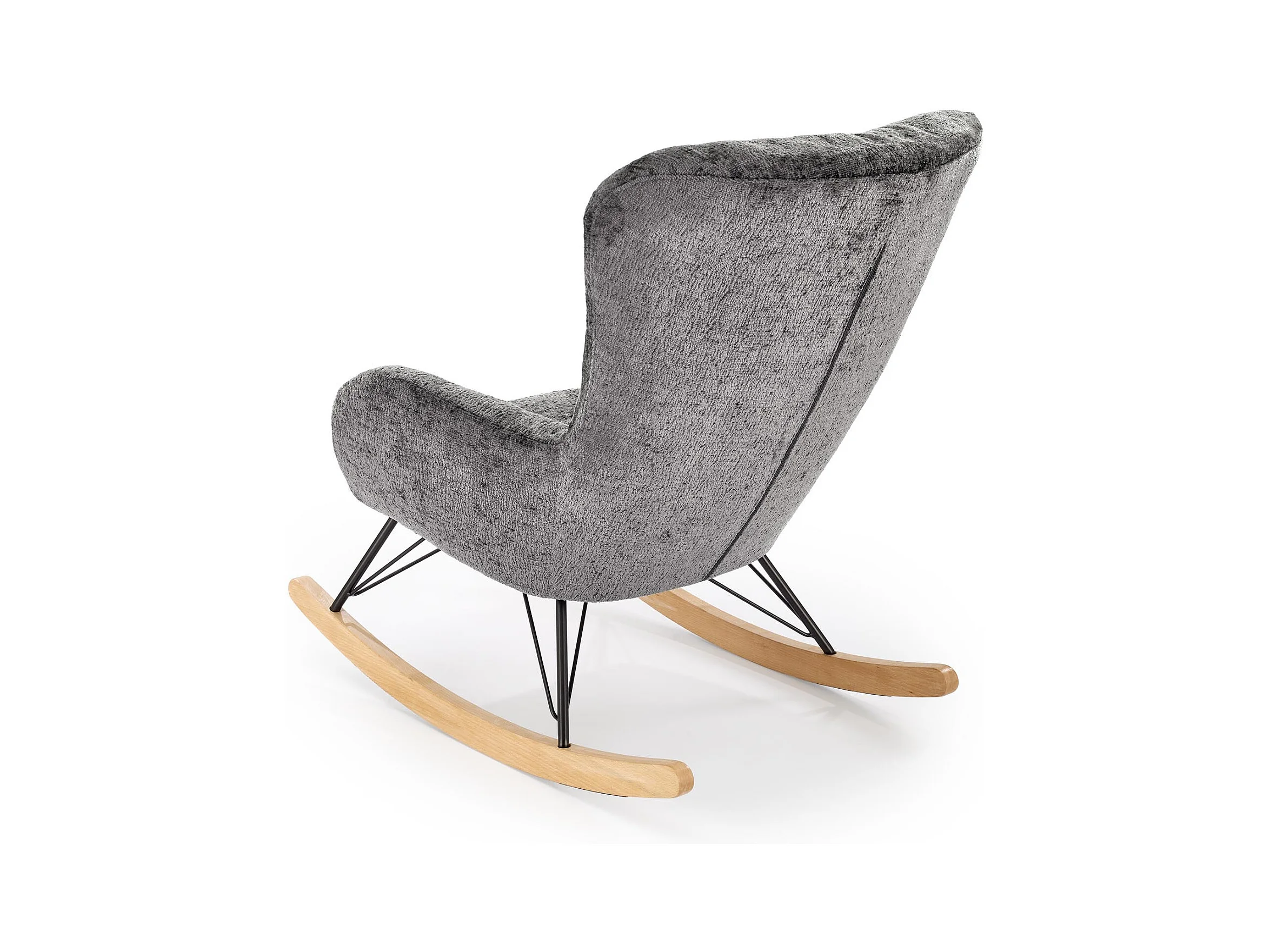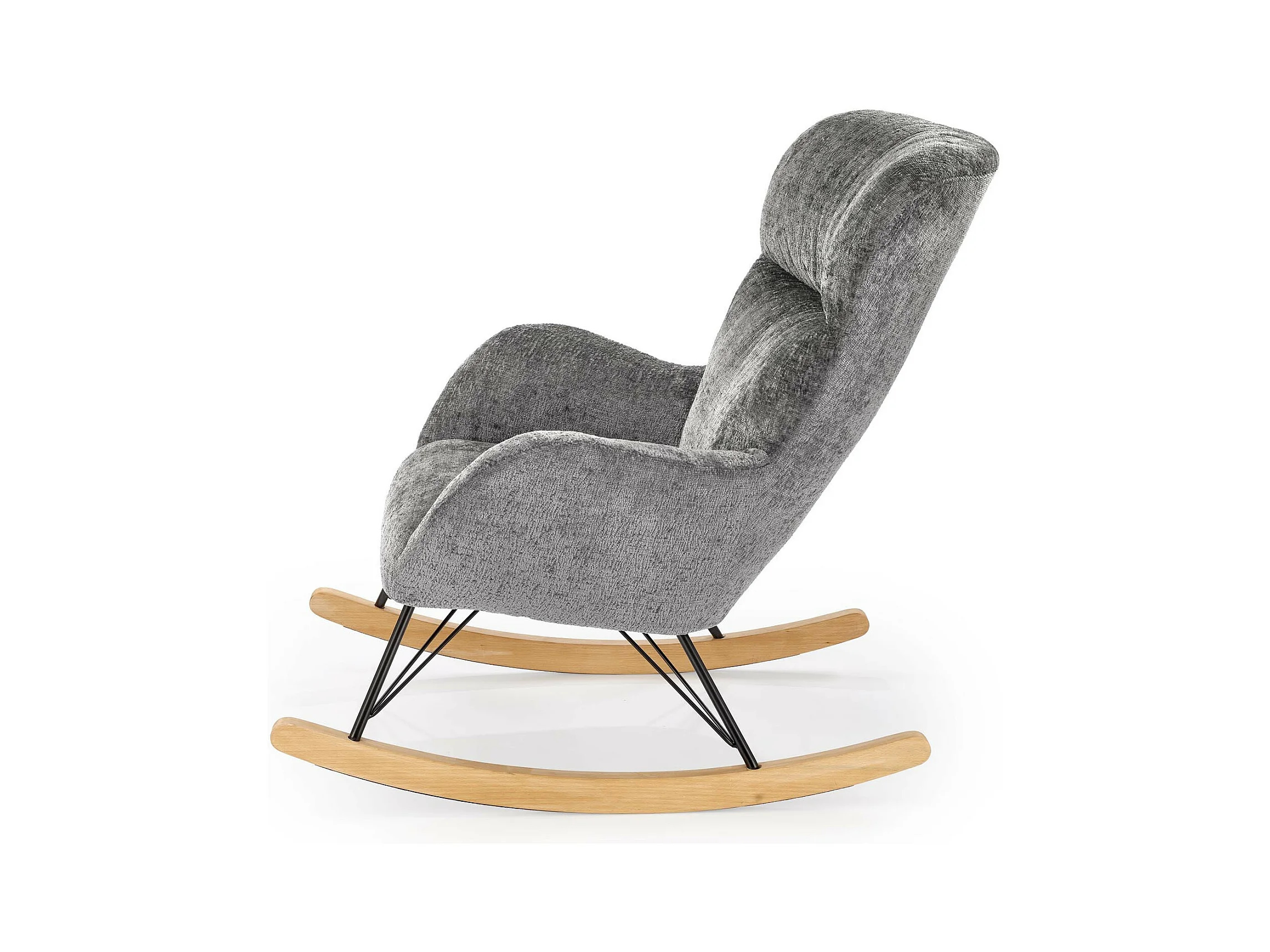 Sedia a dondolo Mid-Century Modern in tessuto morbido, braccioli imbottiti, grigia (88x71x104,5 cm)