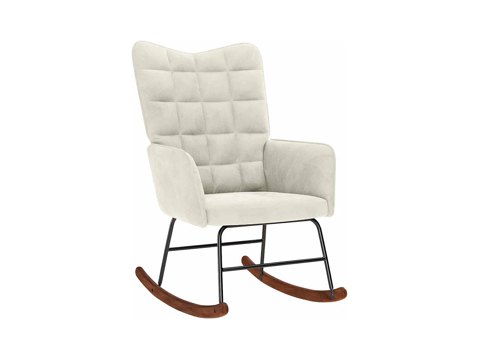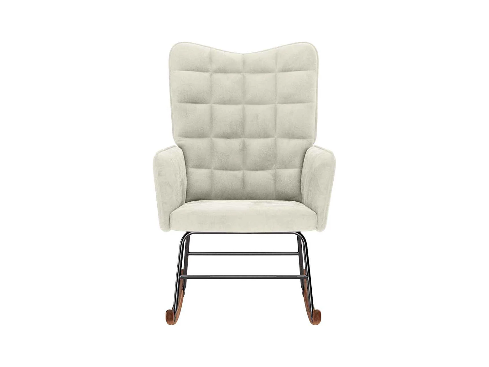 Bequemer und stabiler Sherpa-Schaukelstuhl mit cremefarbenem Holzrahmen (63 x 95 x 97 cm)