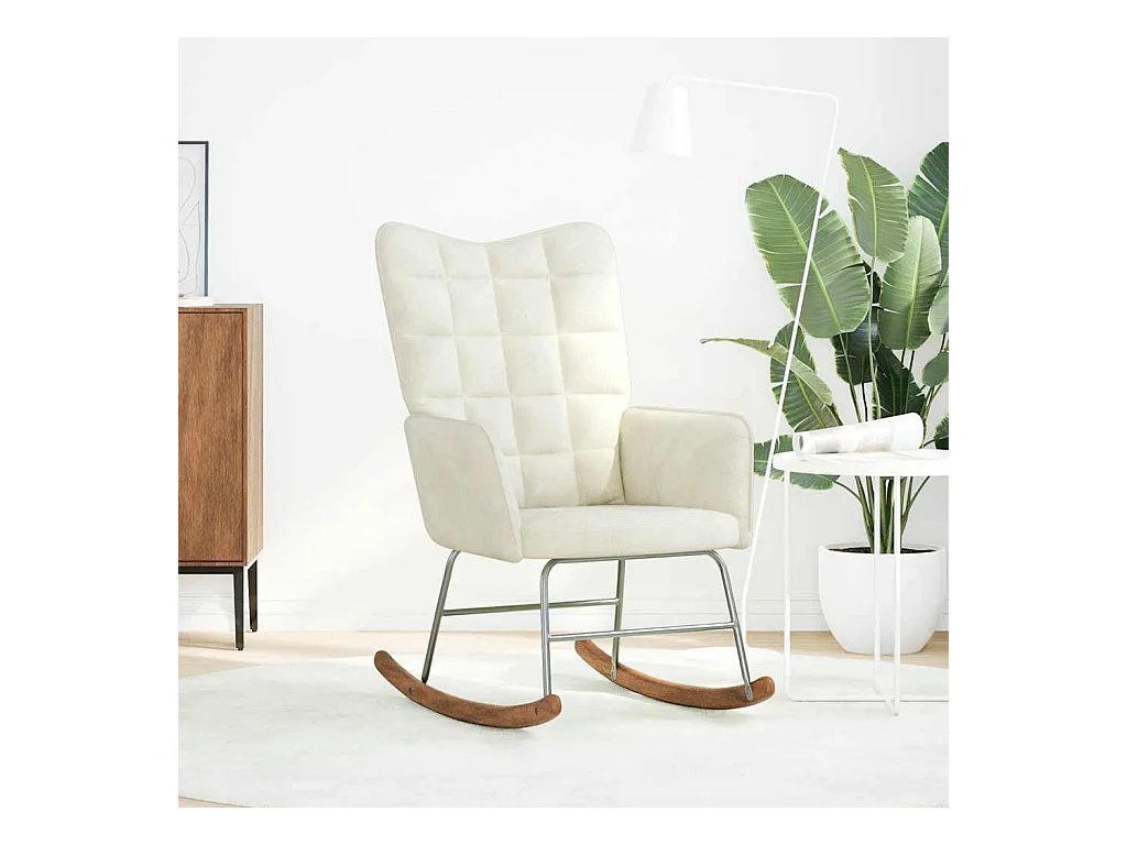 Sedia a dondolo moderna, design elegante, schienale alto imbottito, tessuto teddy, bianco (69x94x101 cm)