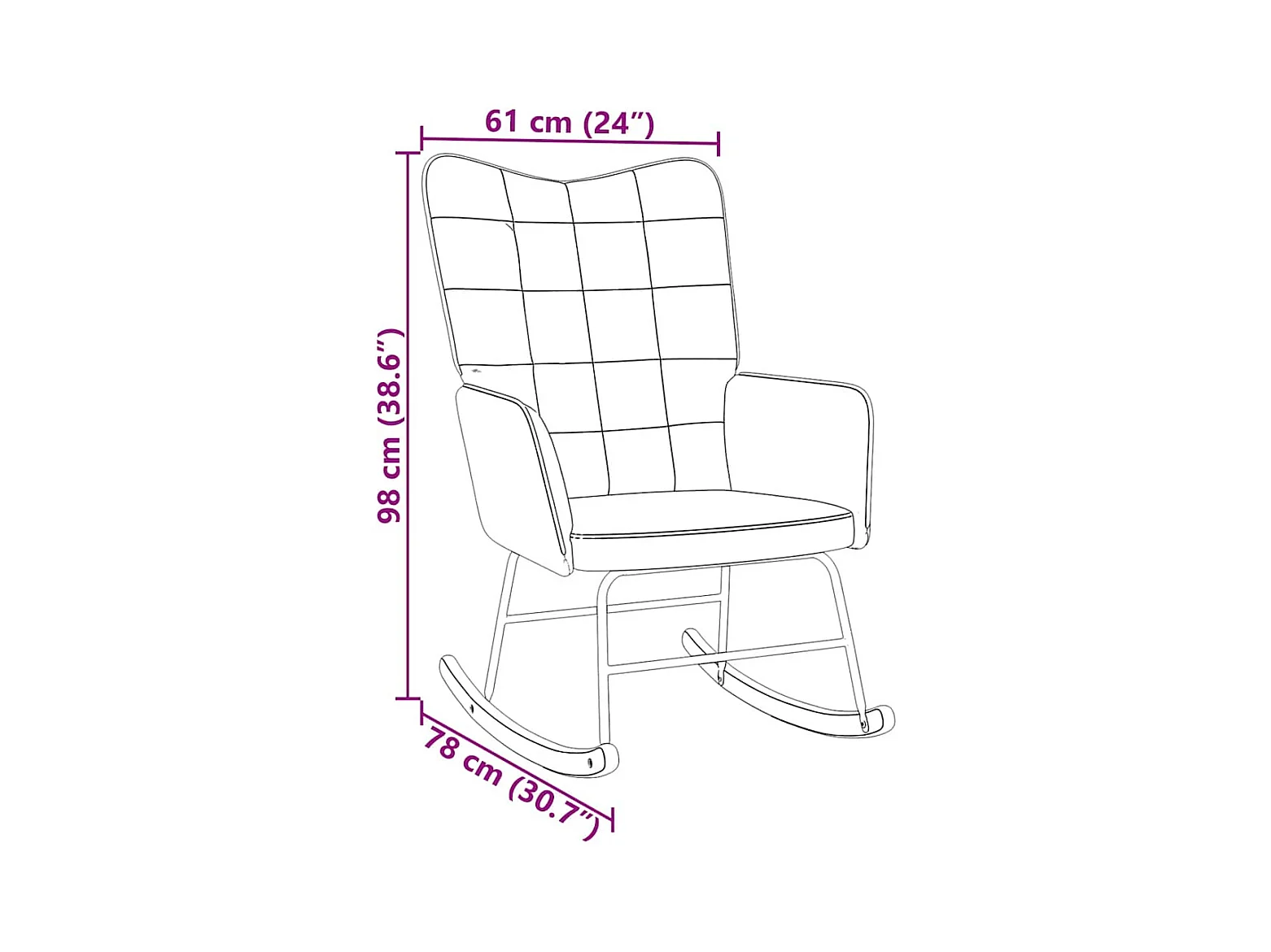 Poltrona a dondolo con pouf, poltrona relax, schienale alto, in tessuto felpato bianco (67x126x98 cm)