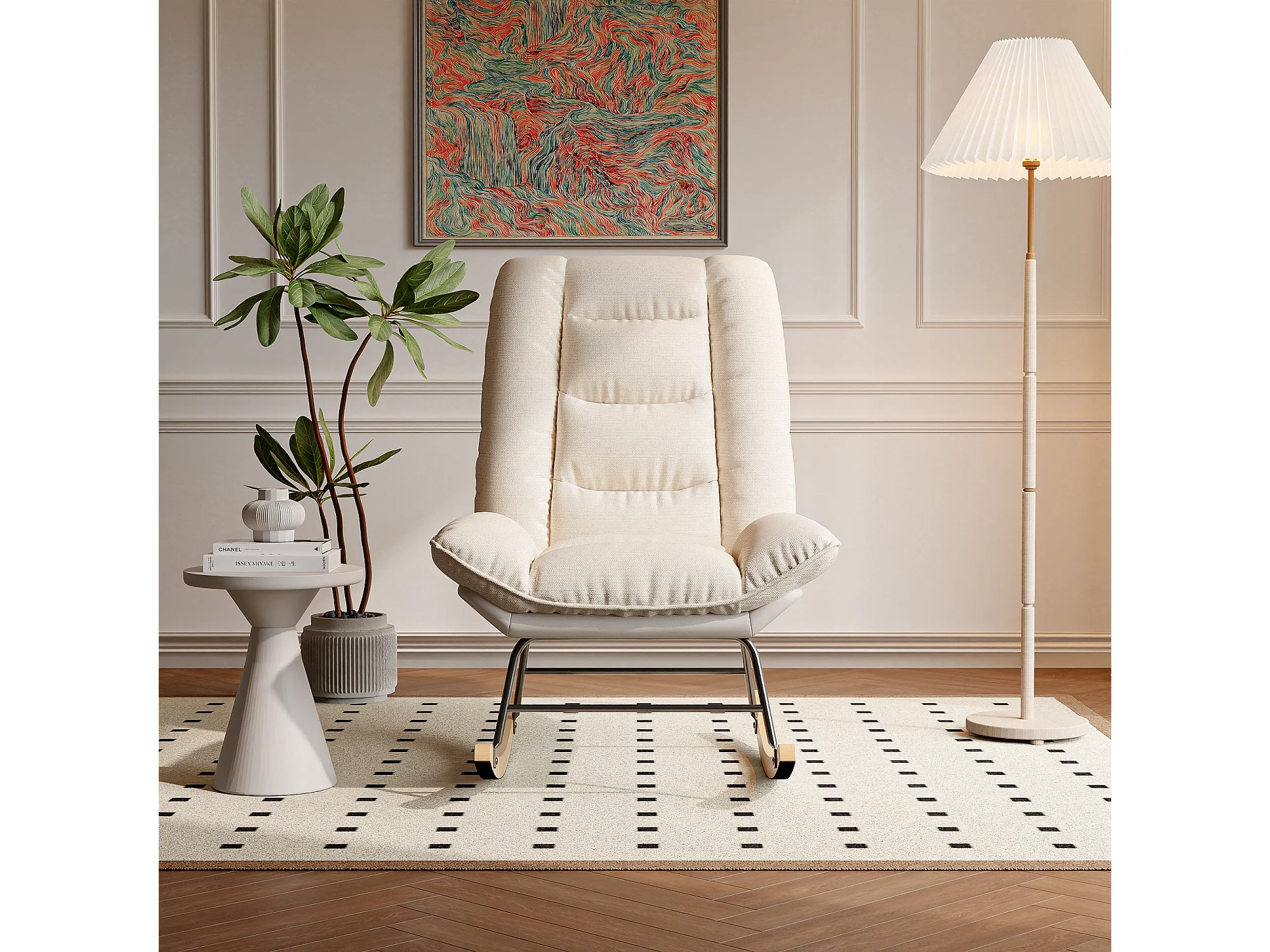 Sedia a dondolo, sedia per allattamento, gambe in legno massello, per soggiorno, beige + grigio, 77x90x98 cm