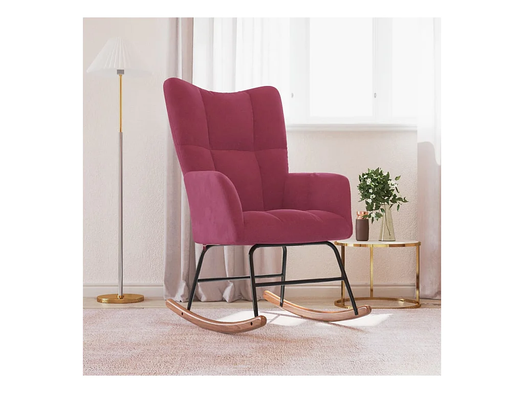 Sedia a dondolo gambe in legno di caucciù Velluto rosso bordeaux