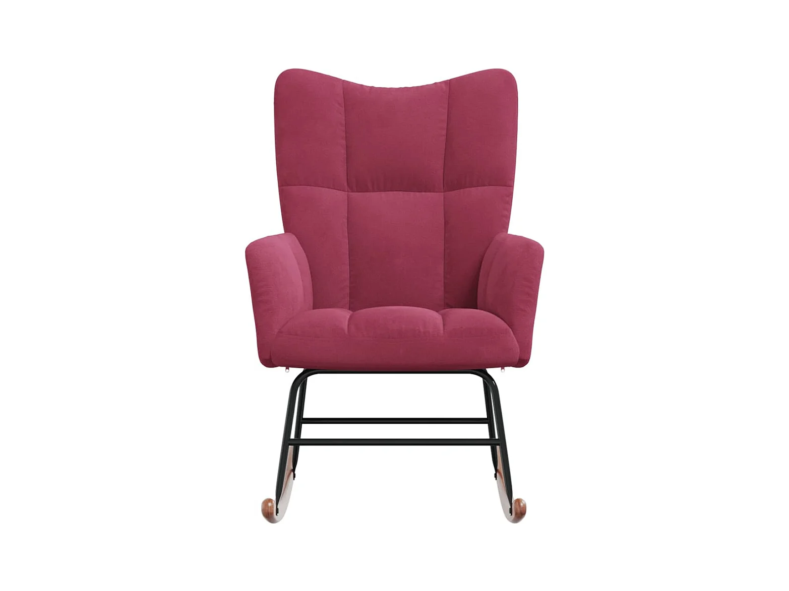 Sedia a dondolo con poggiapiedi in velluto rosso bordeaux