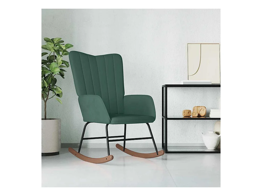 Sedia a Dondolo Verde Scuro in Velluto