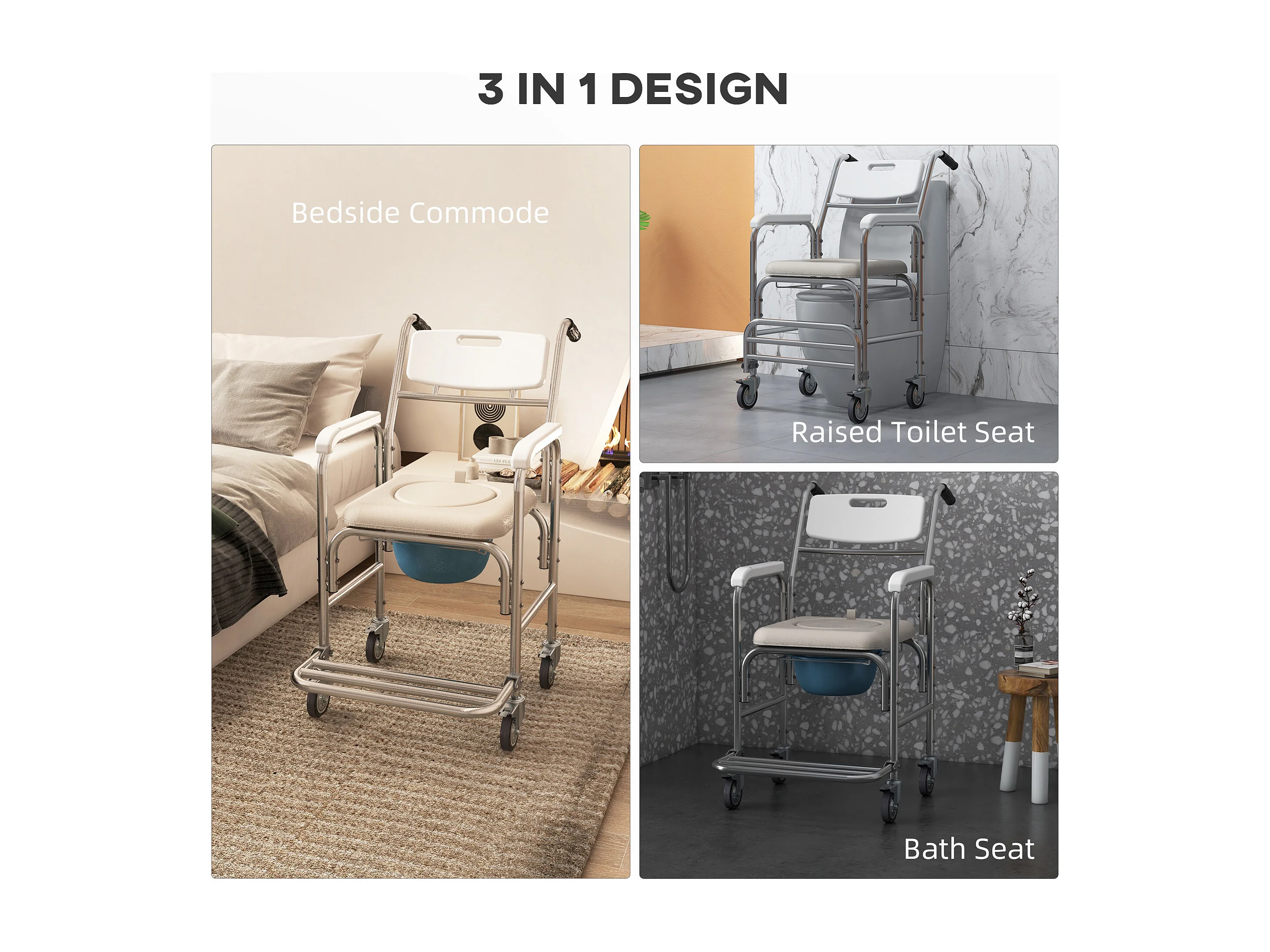 Sedia a rotelle impermeabile con wc vaso rimovibile per anziani/disabili