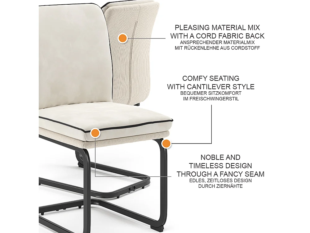 Sedia a sbalzo beige 49x63.5x95.5 eleganza