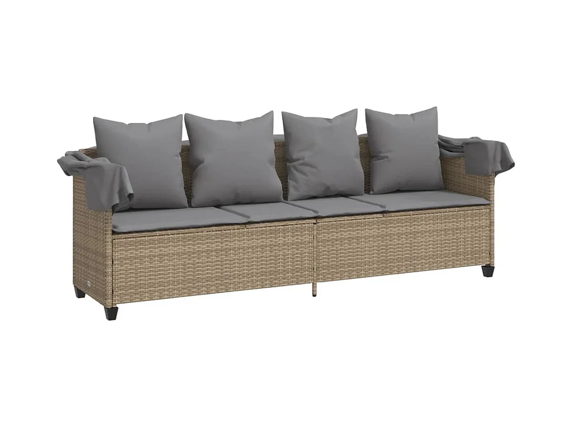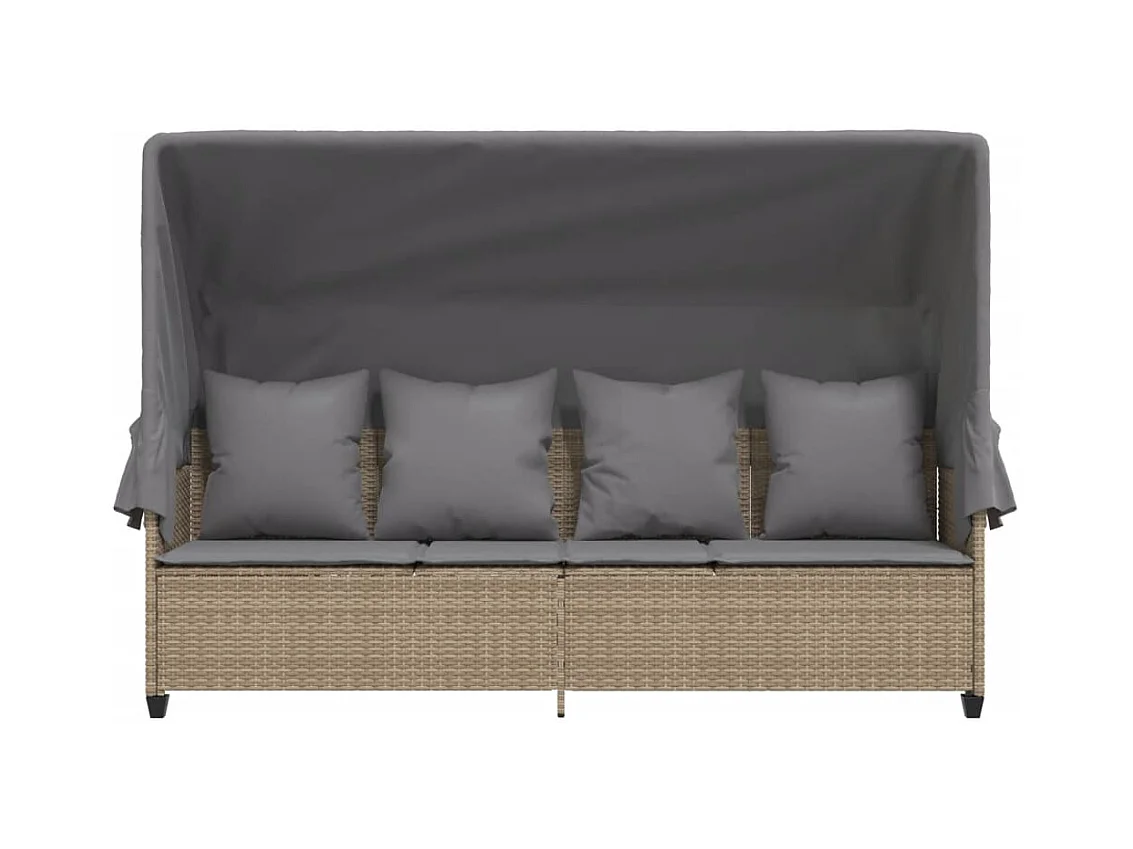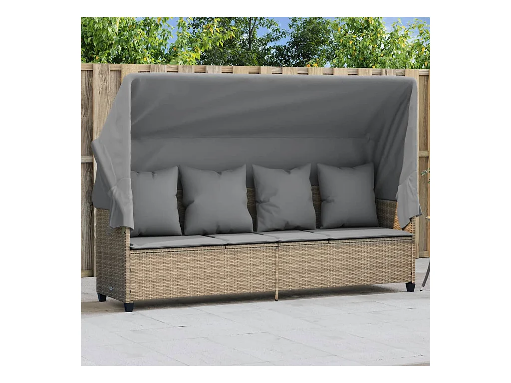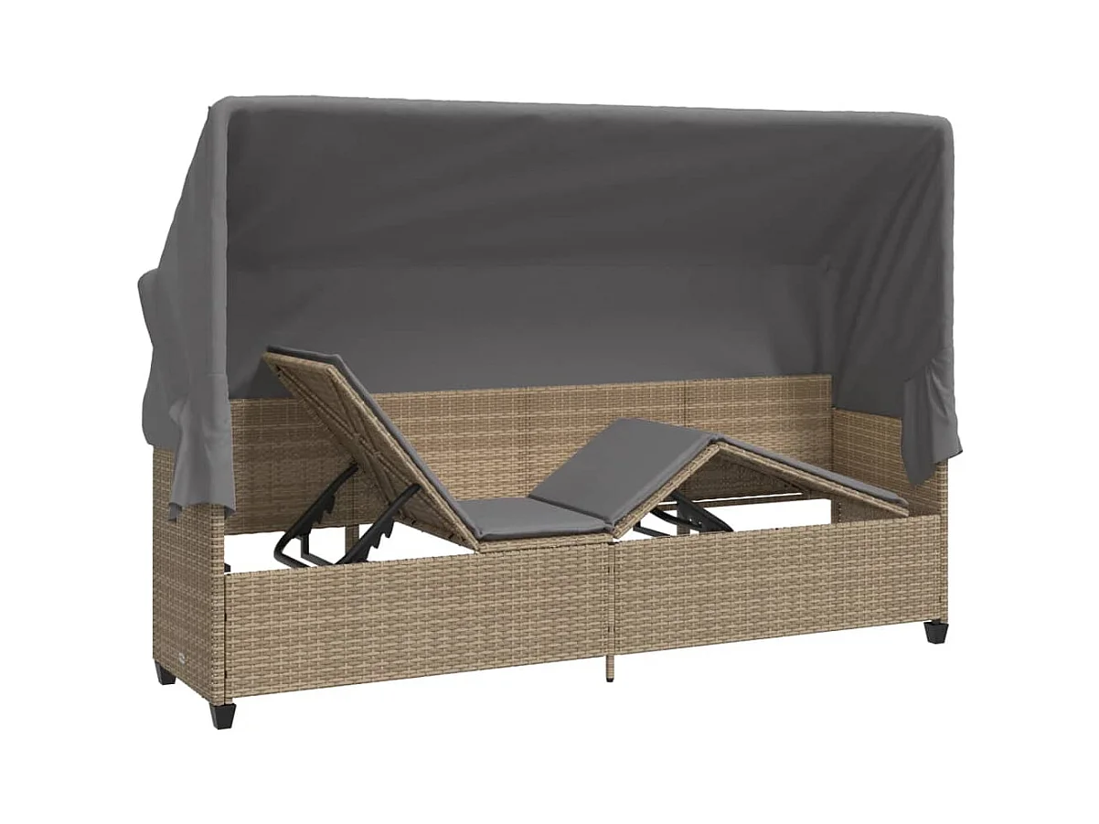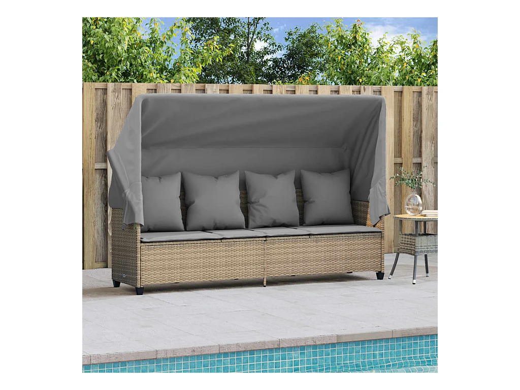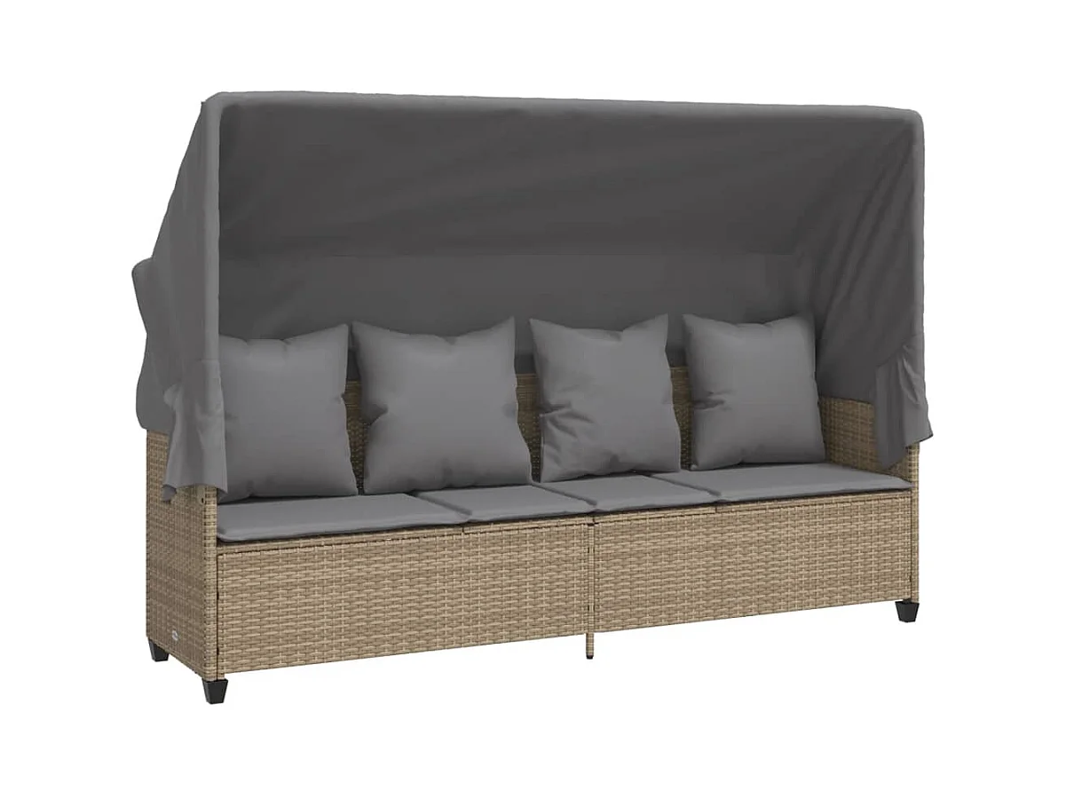 Sedia a sdraio con baldacchino e cuscini in resina intrecciata beige