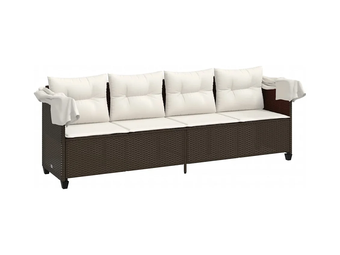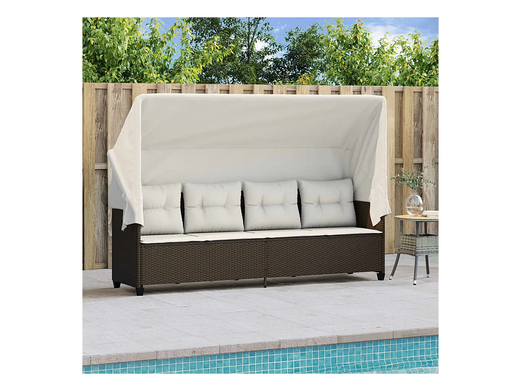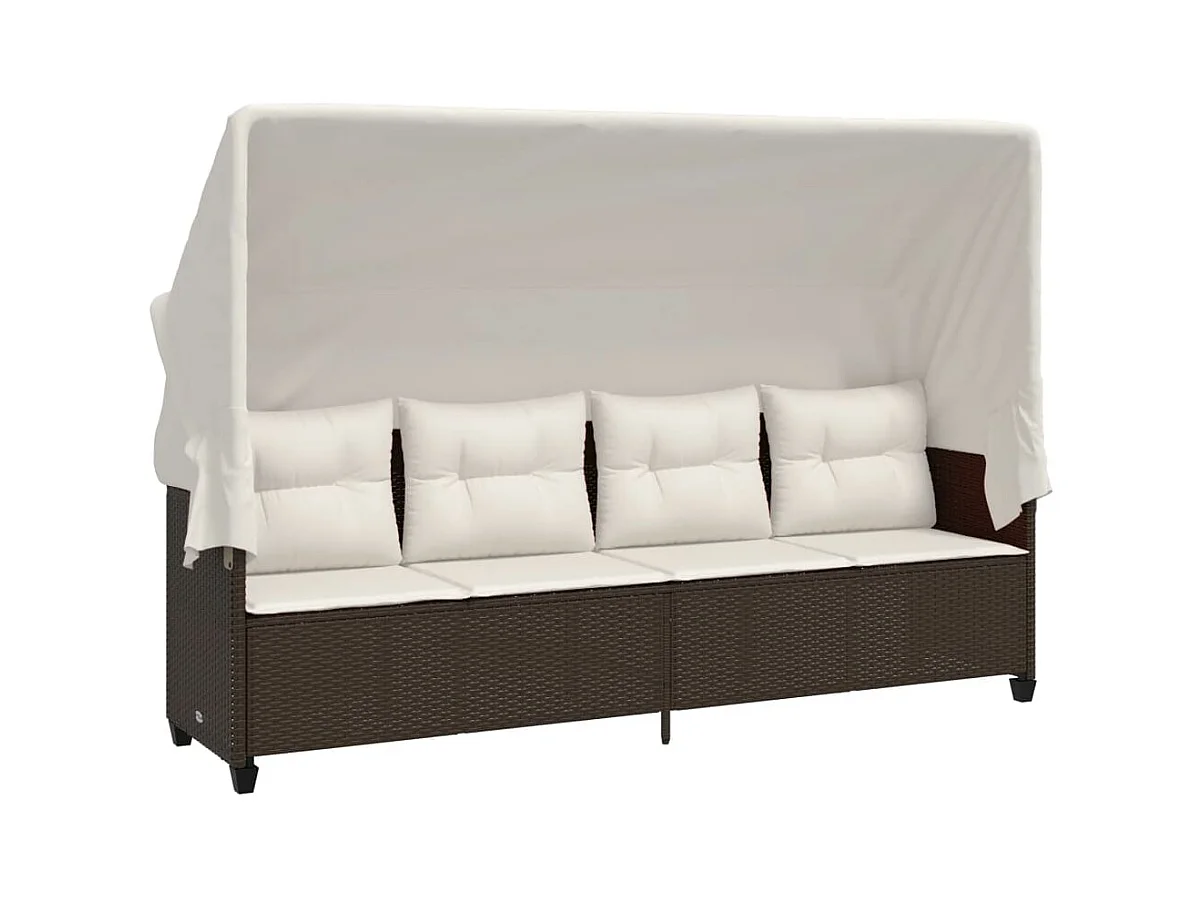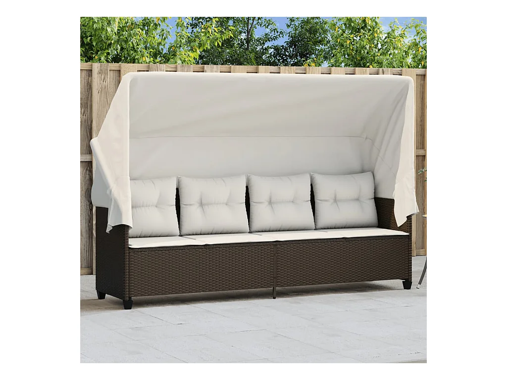 Sedia a sdraio con baldacchino e cuscini in resina intrecciata marrone