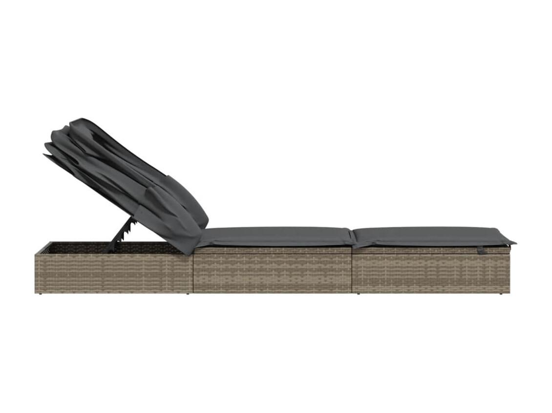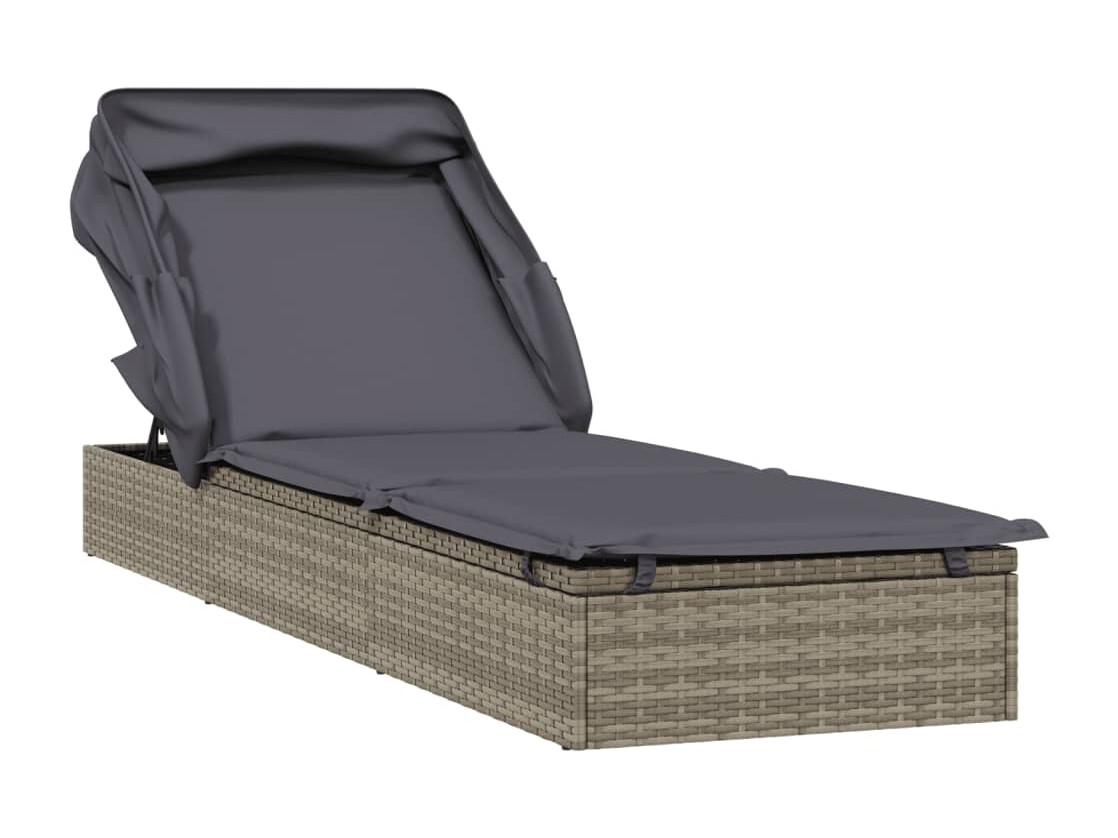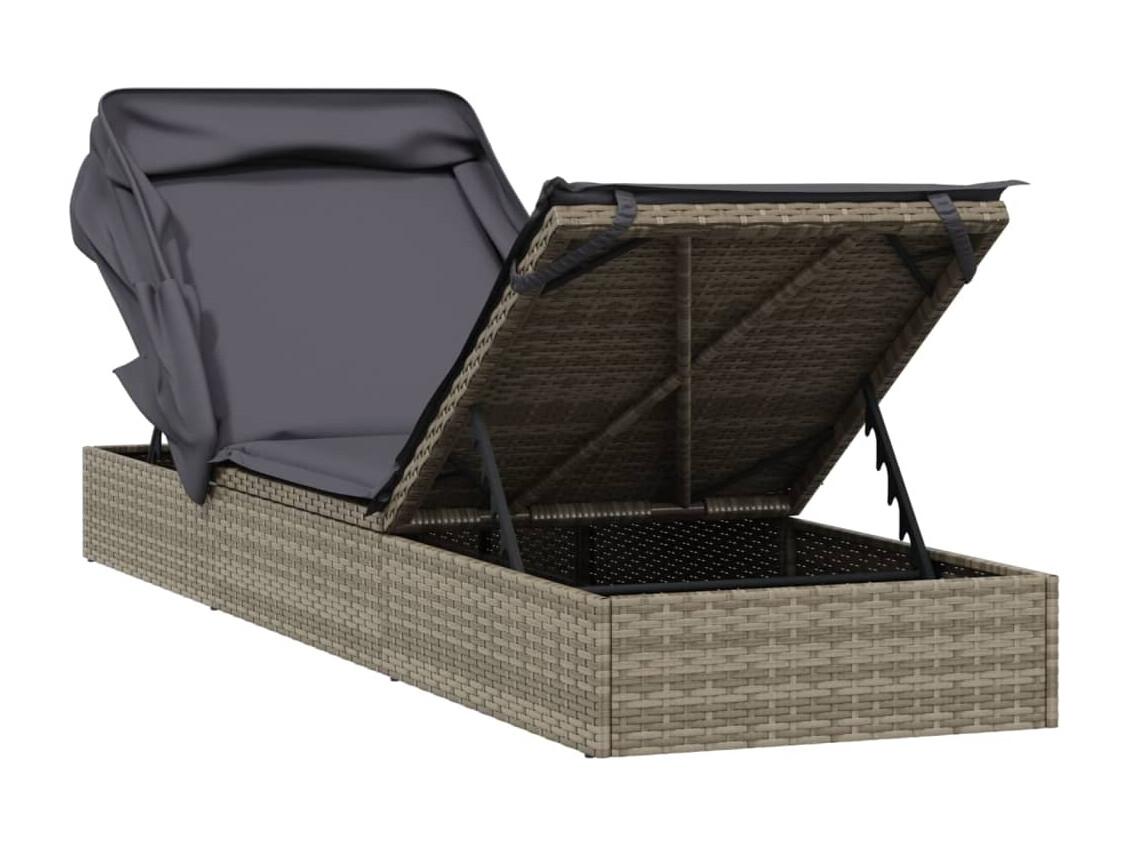Sedia a sdraio con tetto pieghevole, grigio, 213x63x97 cm, resina intrecciata