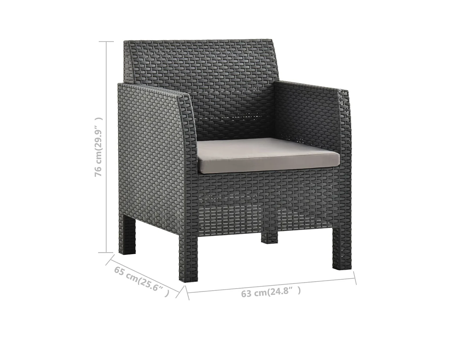 Sedia da giardino con cuscino antracite 63x65x76 cm PP Rattan