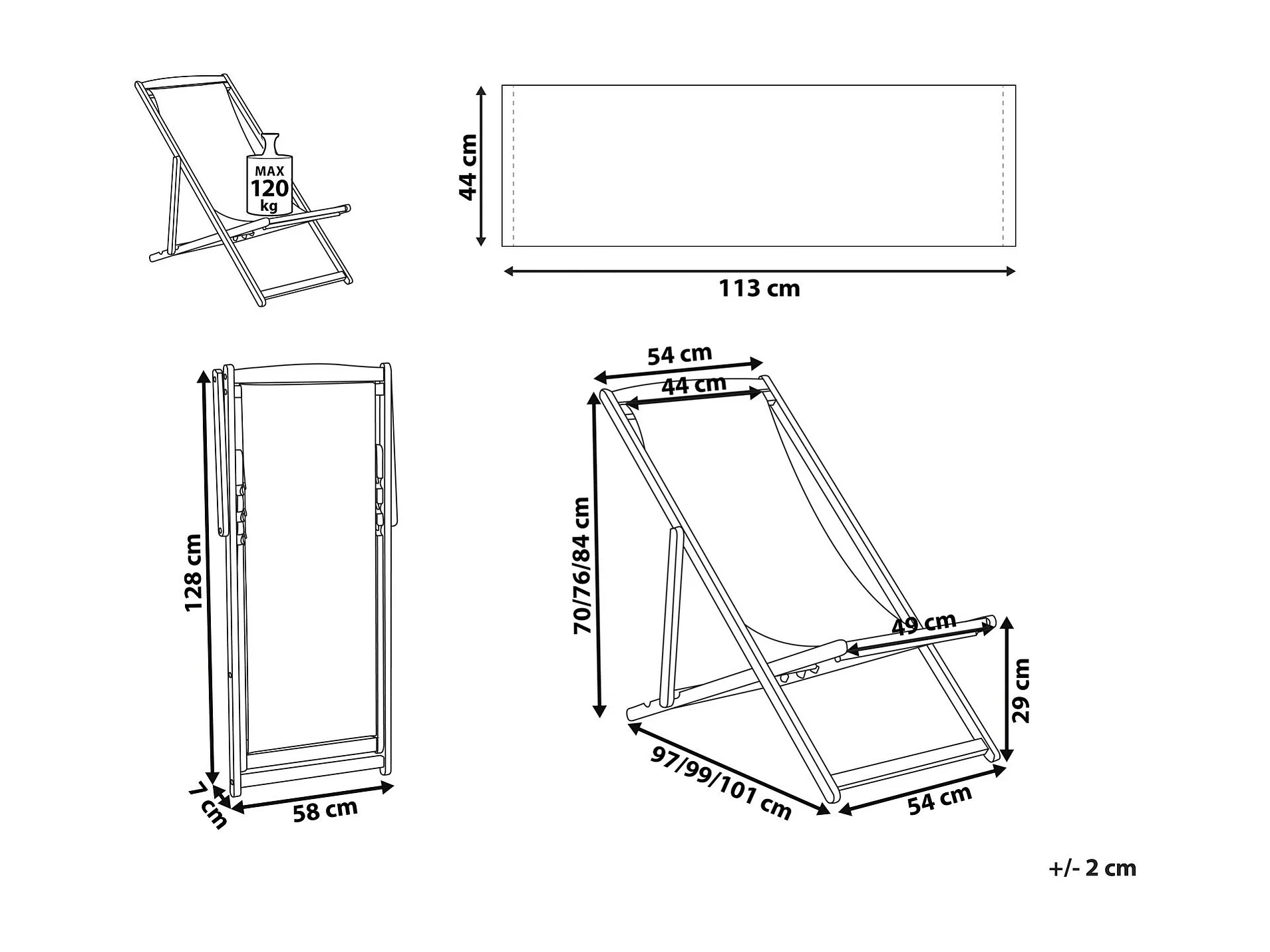 Sedia a sdraio pieghevole ANZIO Legno d'acacia Nero