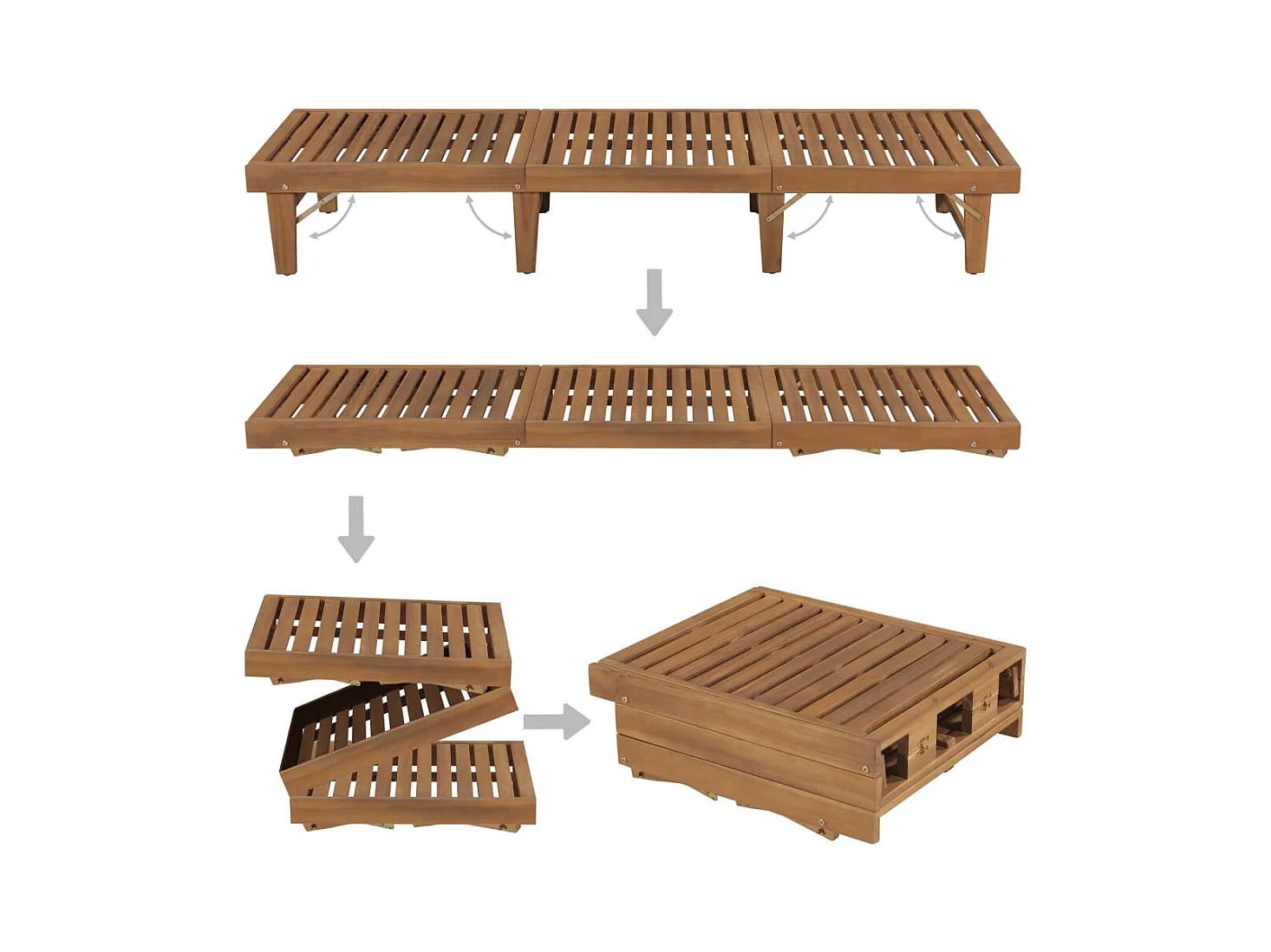 Set di 2 sedie a sdraio con tavolo e cuscini in legno massello di acacia
