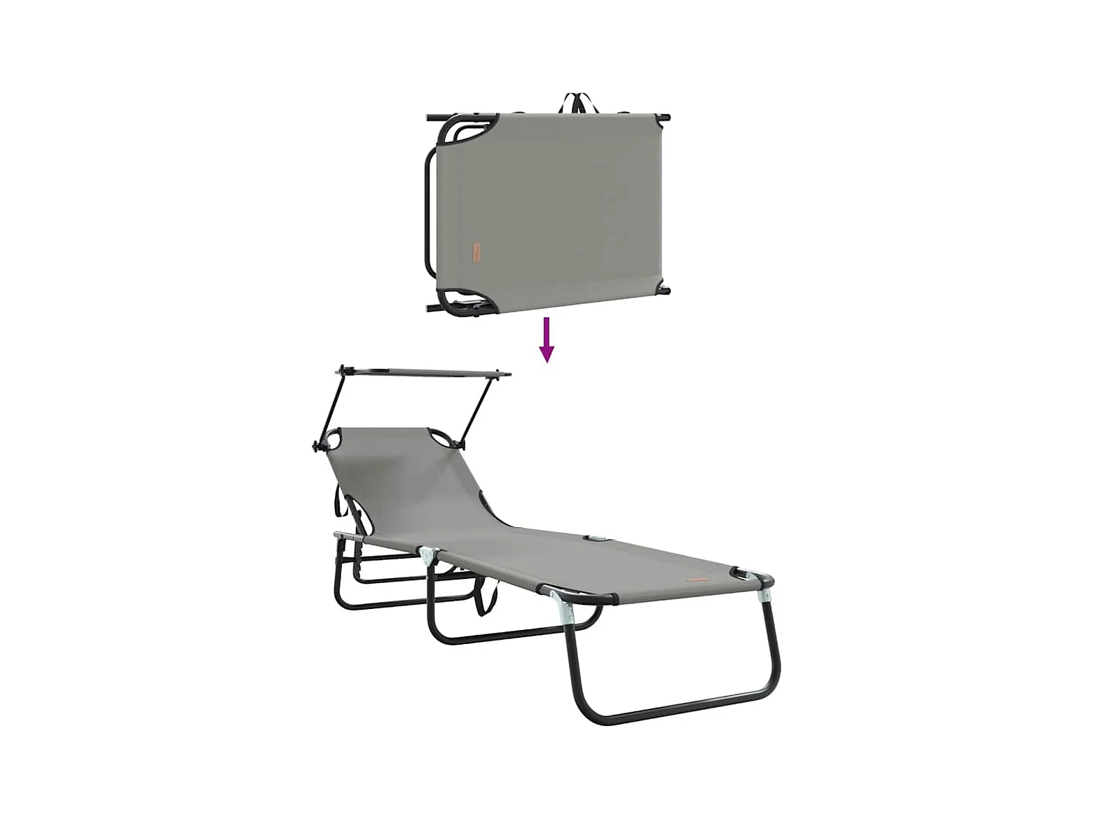Sedia a sdraio pieghevole grigia con tettuccio in tessuto Oxford 600D