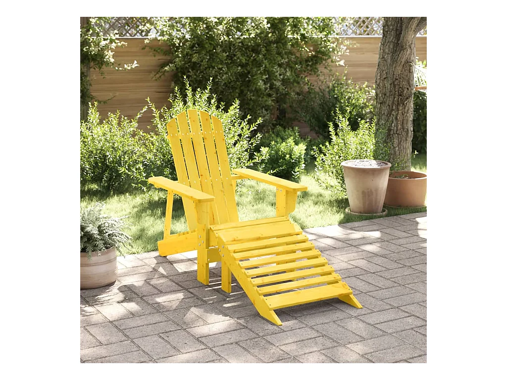 Sedia Adirondack con pouf giallo, legno massello di abete