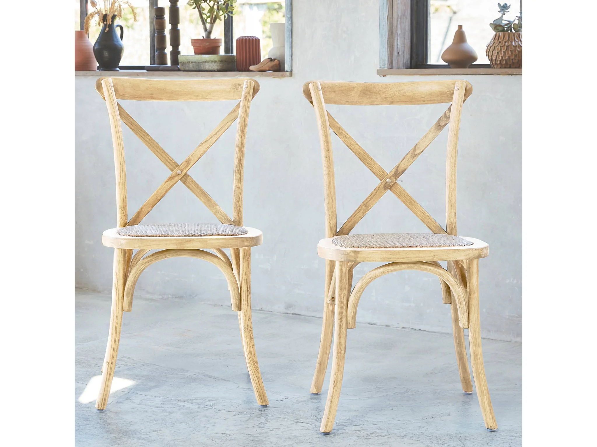 Set 2 sedie bistrò vintage in legno, marrone naturale