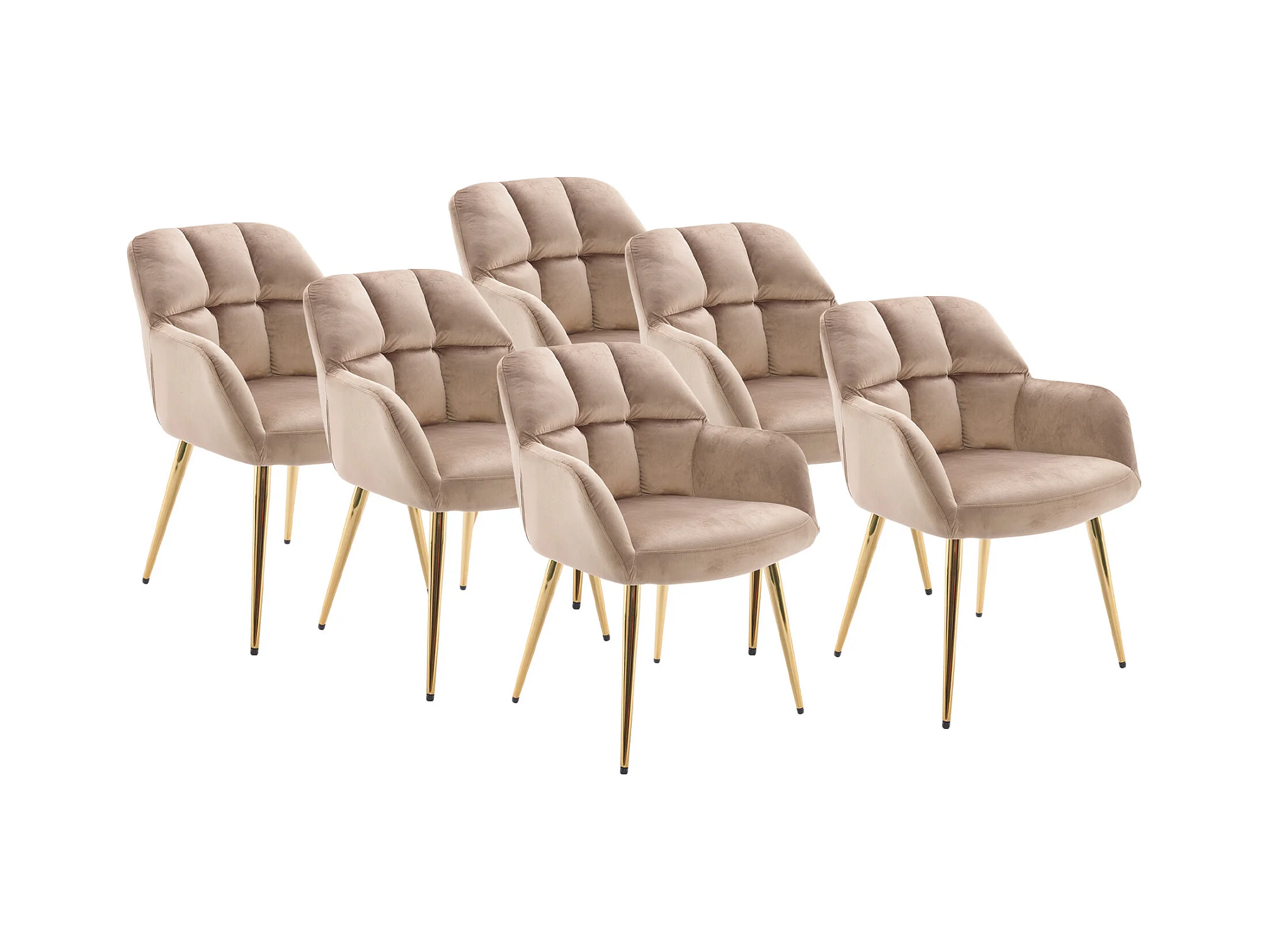 Sedia con braccioli Velluto e Metallo Dorato Beige - Lotto di 6 - PEGA