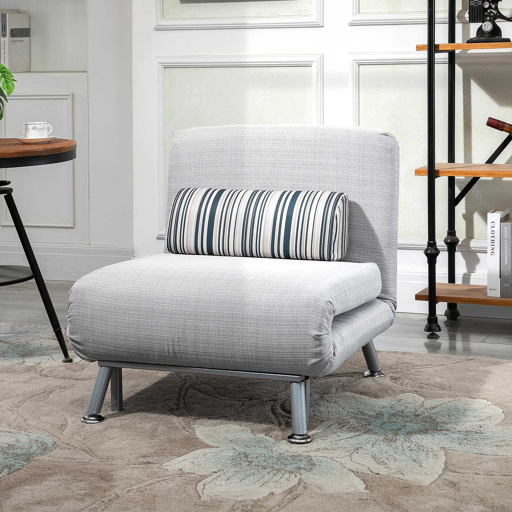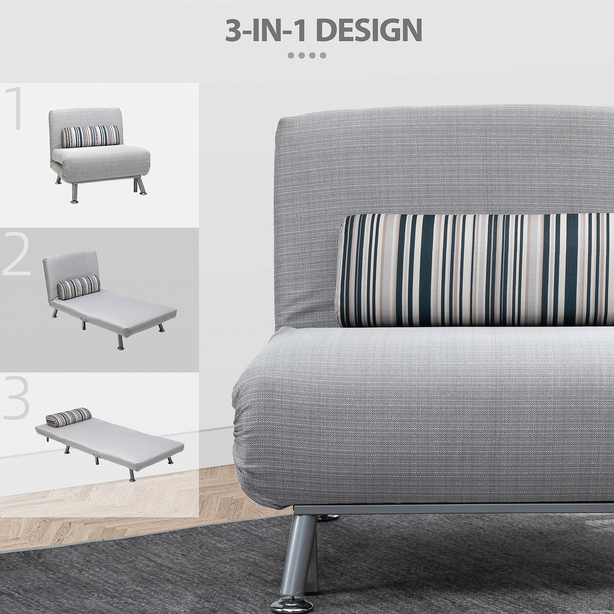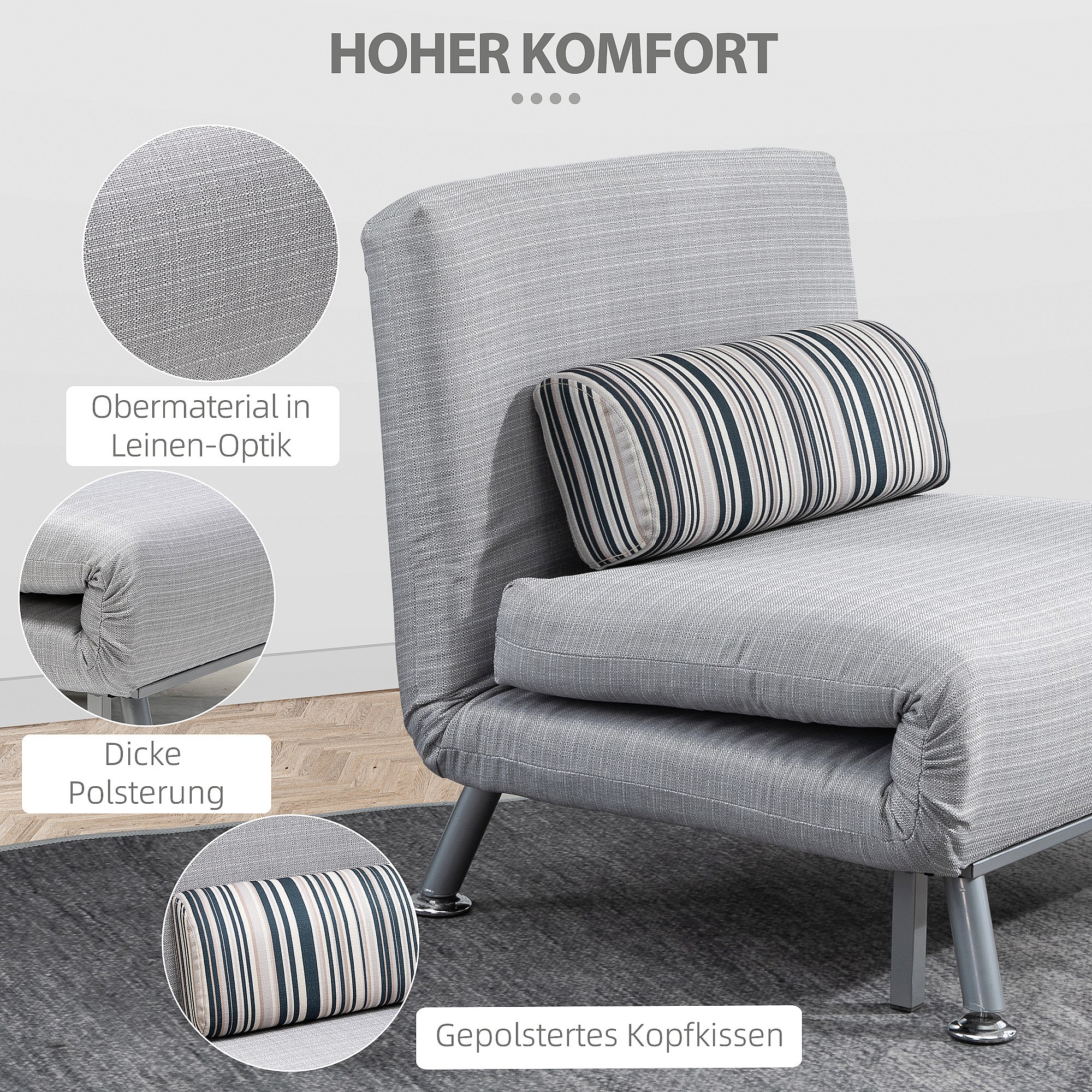 Fauteuil convertibile 3-en-1 tissu lin avec fonction lit salon gris 78x72x83cm