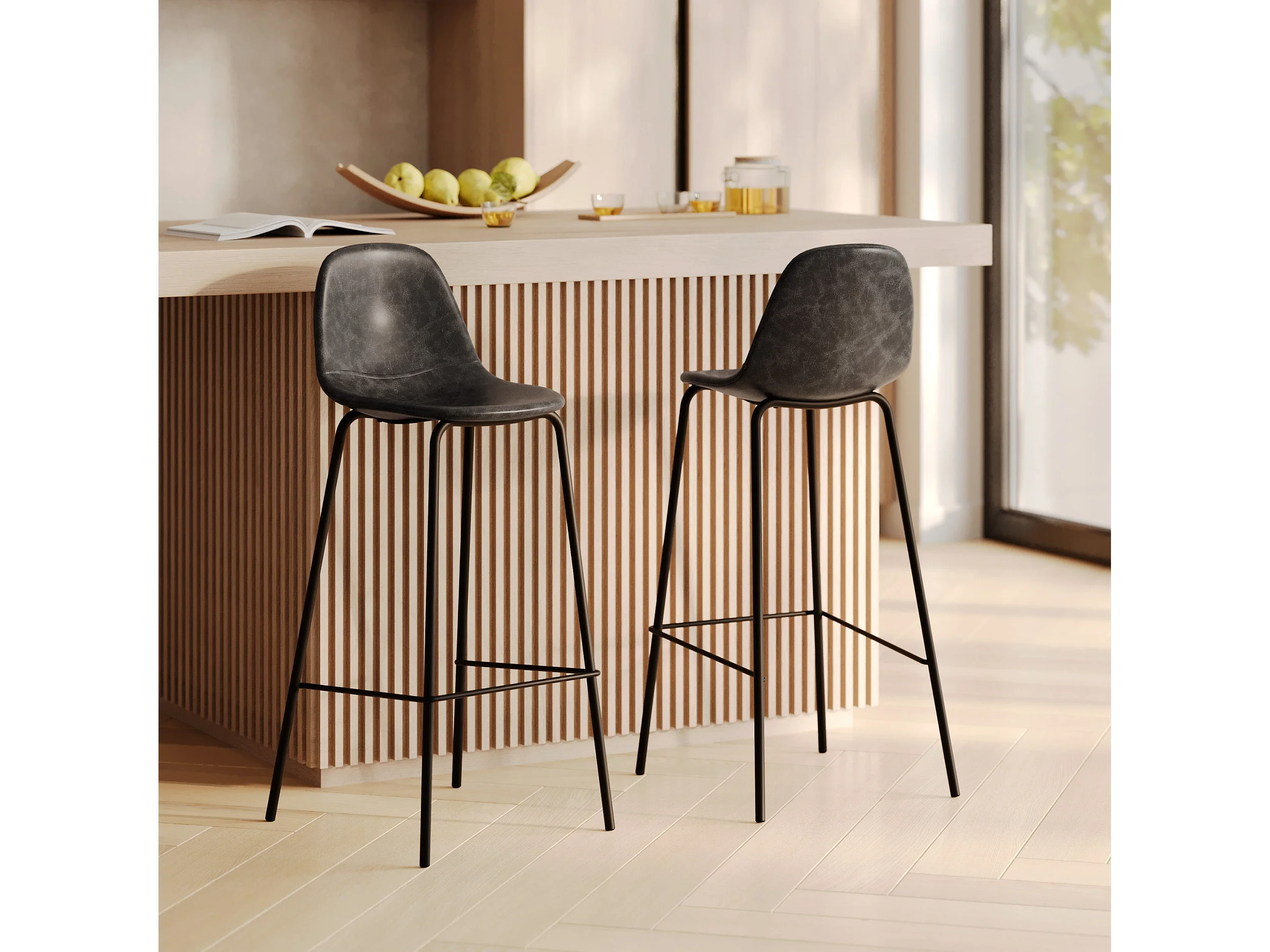 Set di 2 sedie per isola centrale 65 cm in ecopelle grigia - Henrik