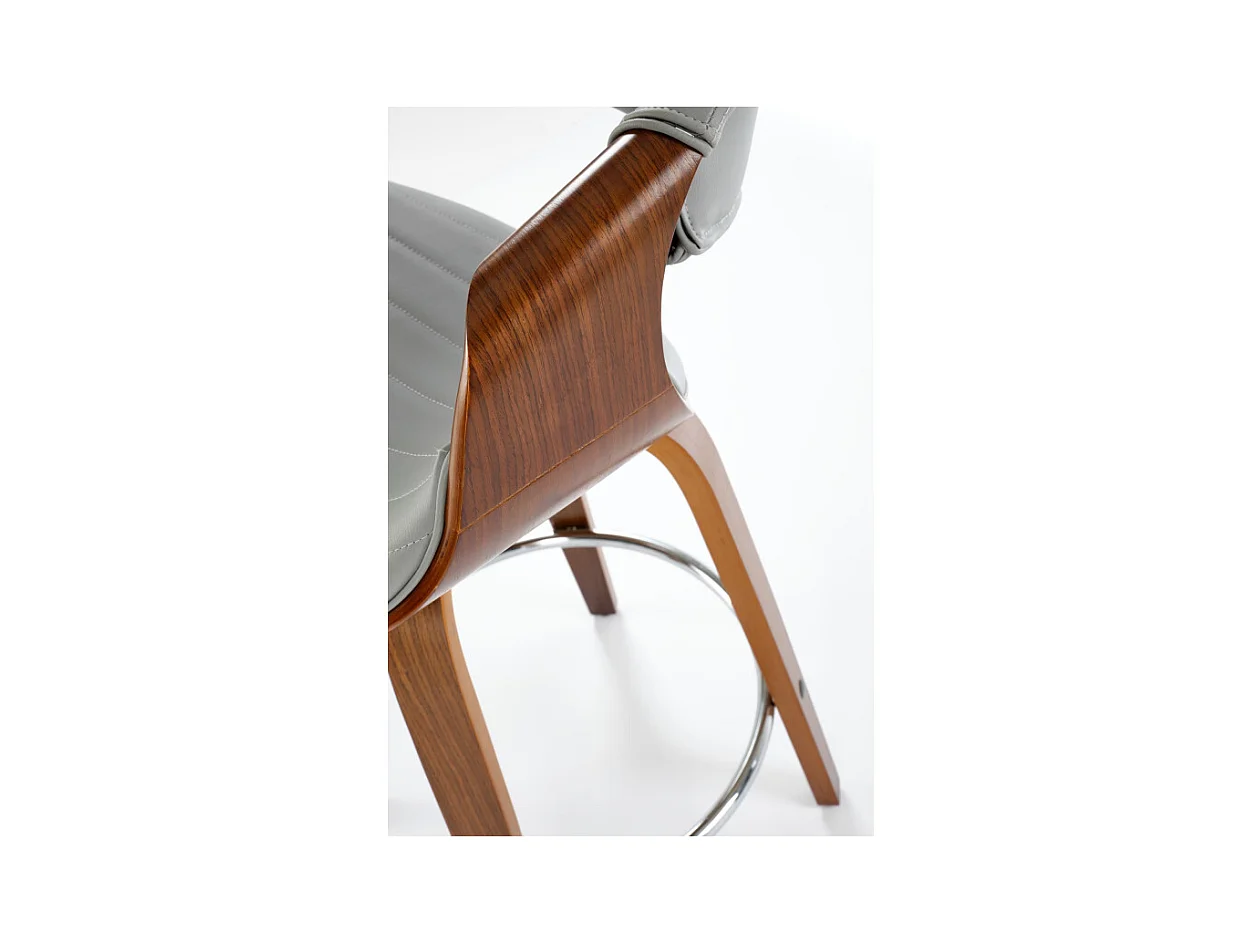 Sedia da bar di design con impiallacciatura in noce ed ecopelle grigio Aster