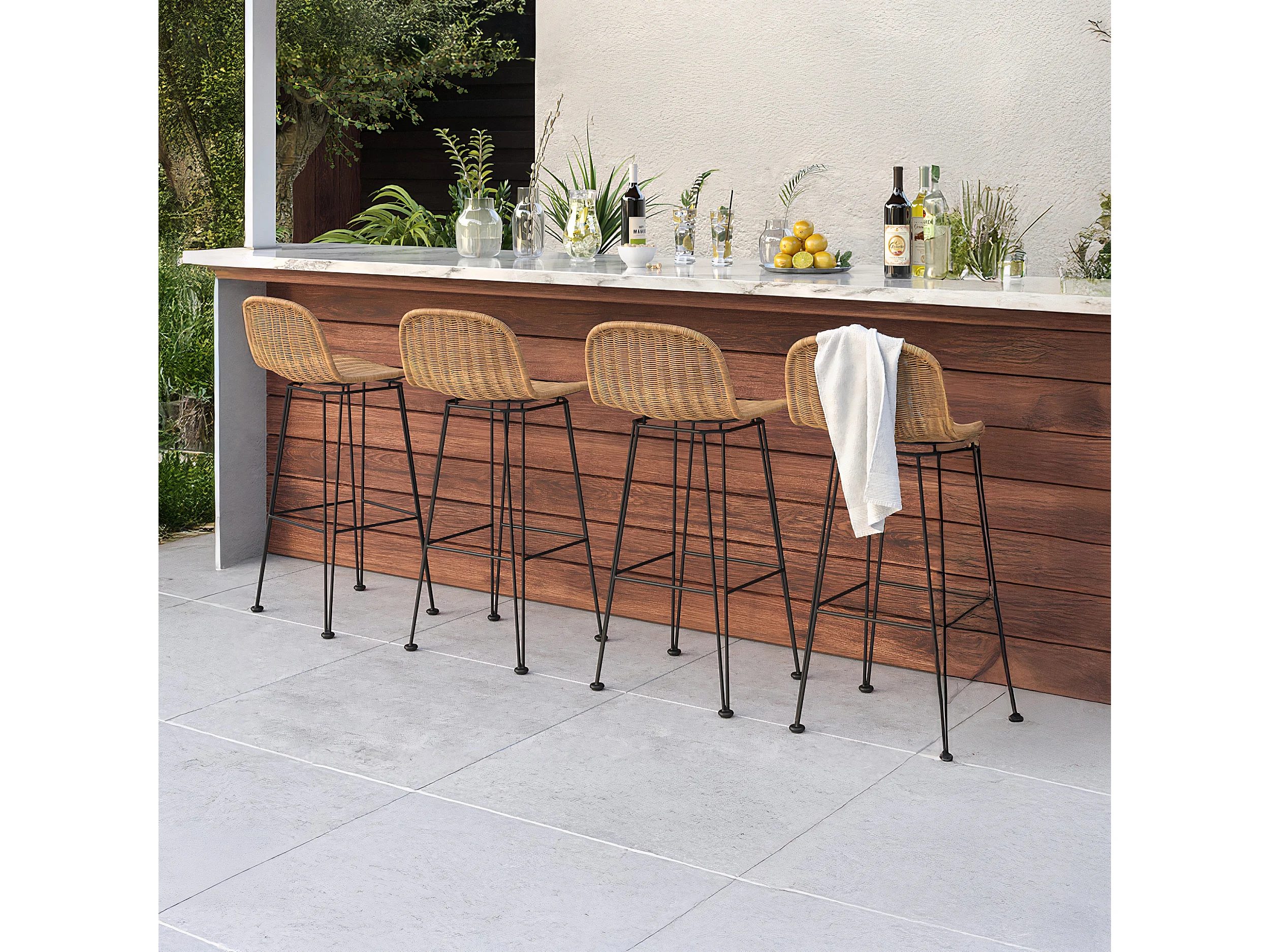 Set di 2 sgabelli da bar 76 cm in resina intrecciata marrone - Jigani