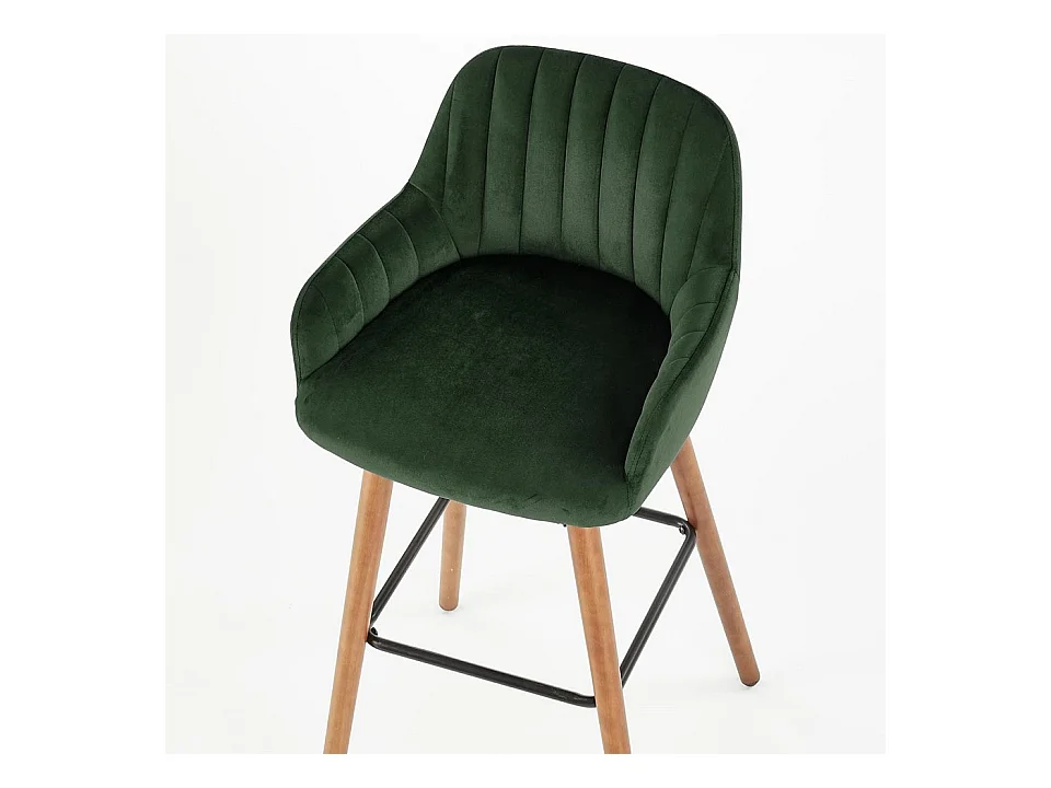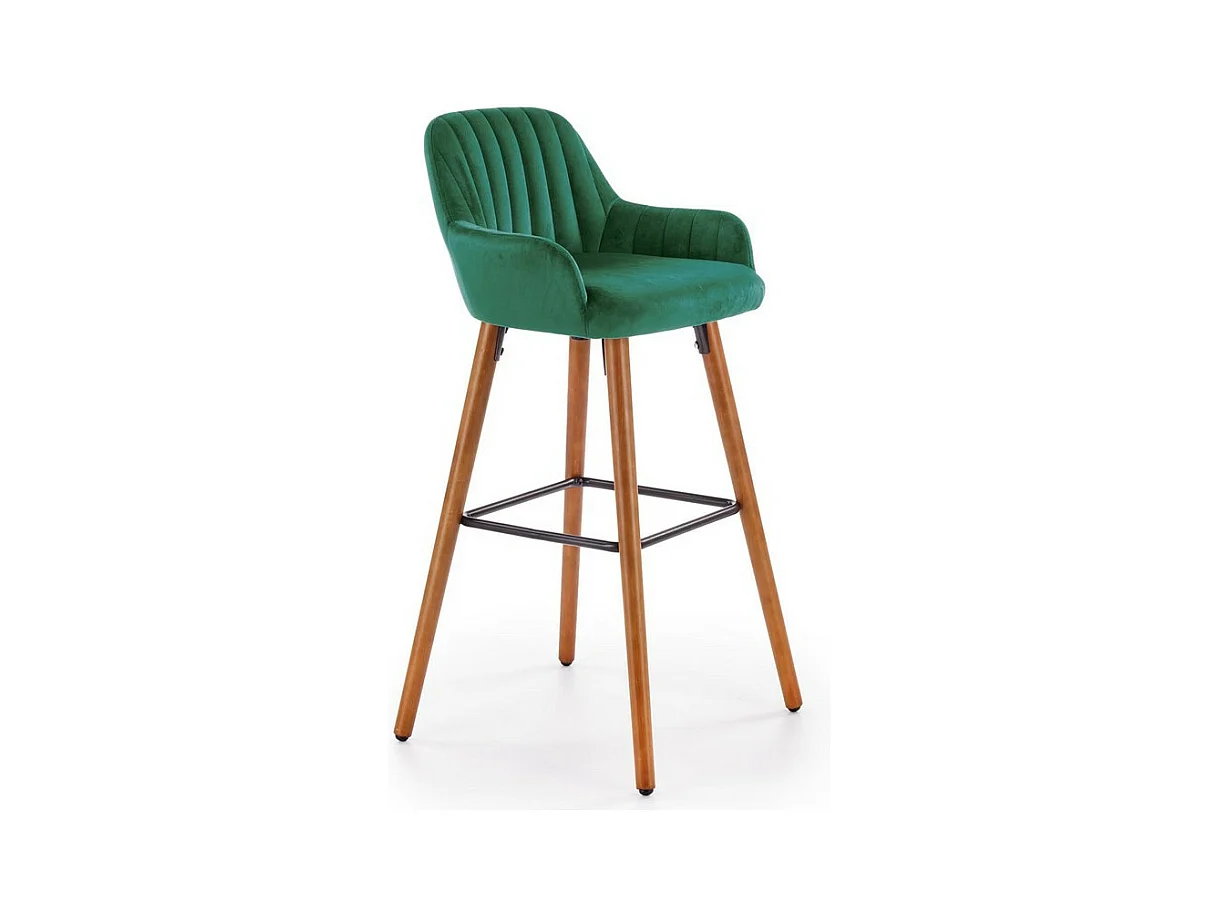 Sedia da bar in velluto verde con gambe in legno massiccio PULITO