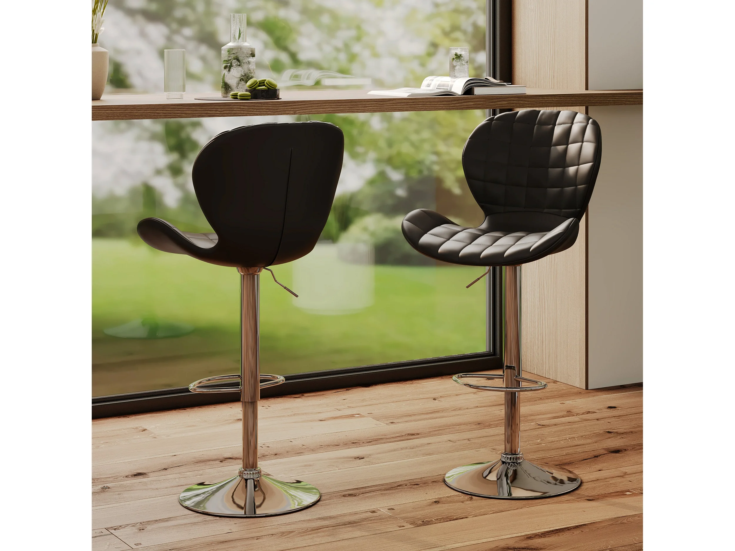 Set di 2 sedie da bar regolabili 53/74 cm in ecopelle nera - Mazzia