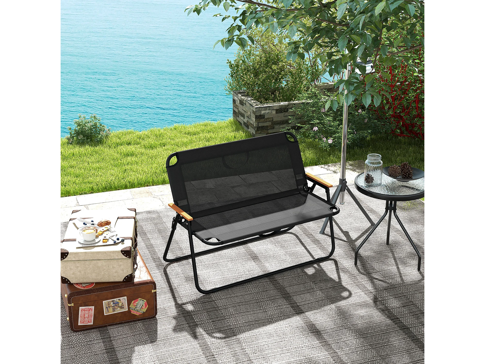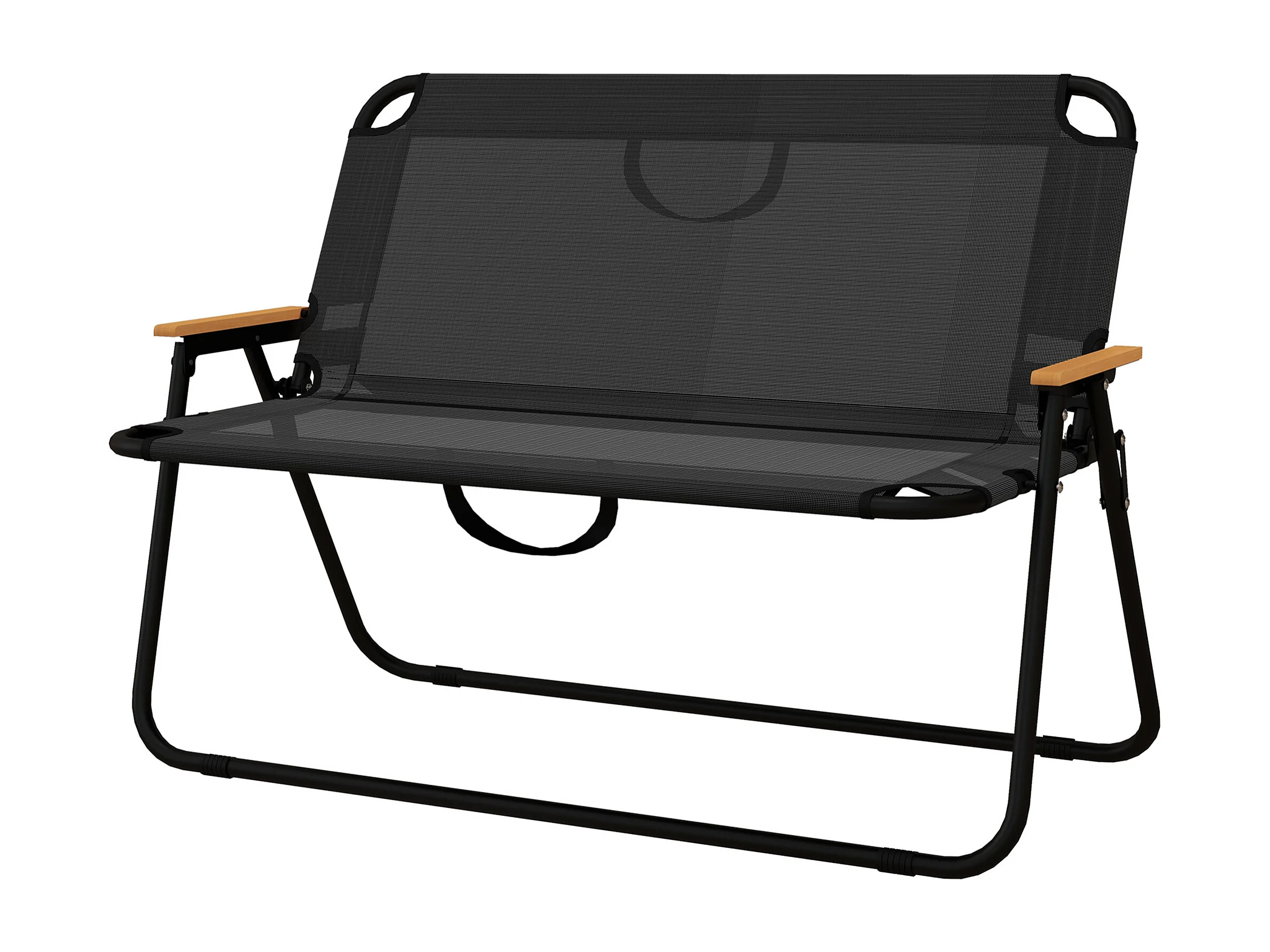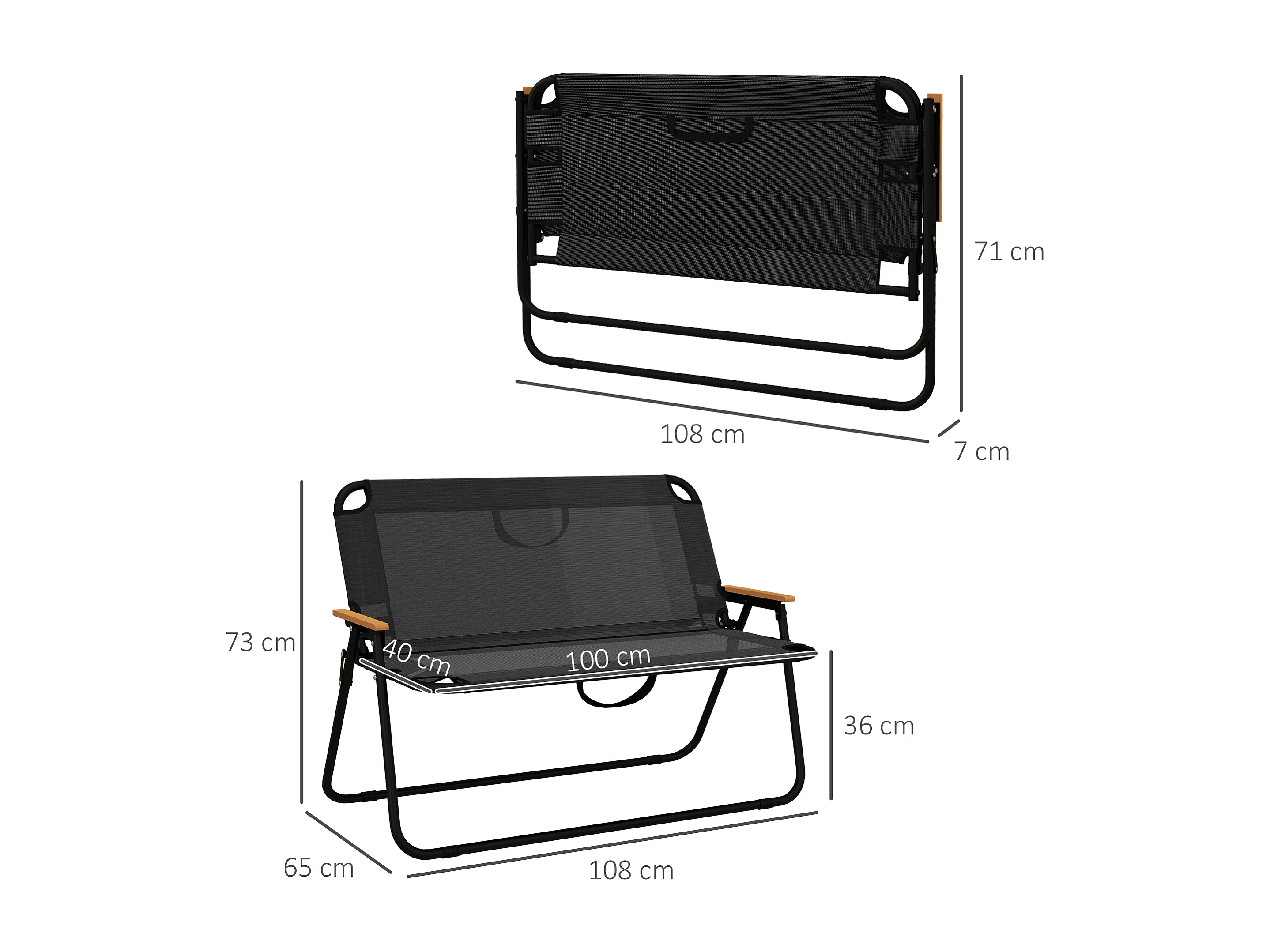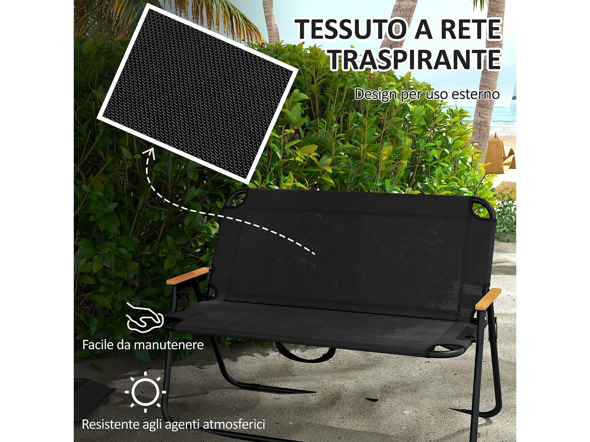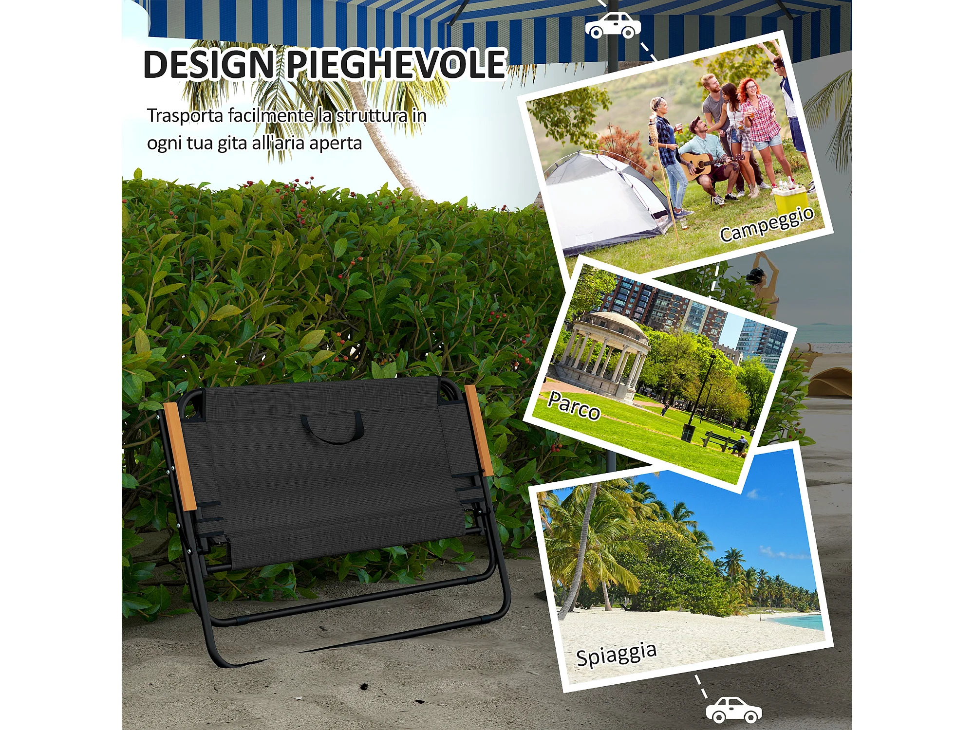 Sedia da campeggio 2 posti pieghevole in acciaio e tessuto nero