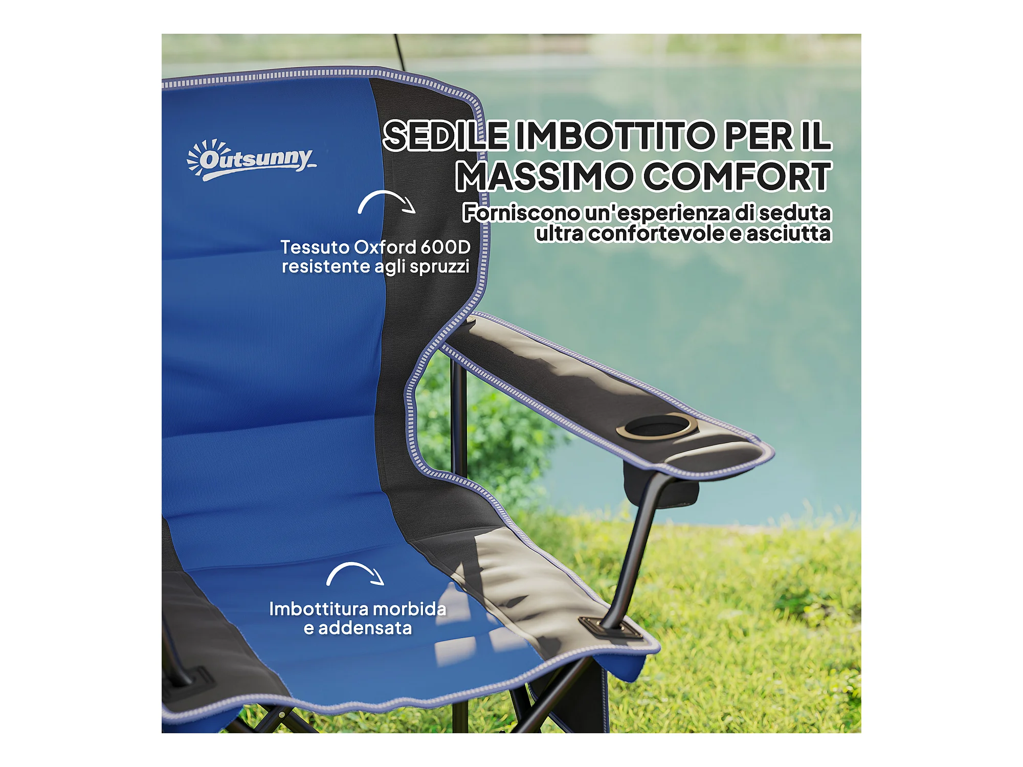 Sedia da campeggio pieghevole con portabicchieri e borsa blu