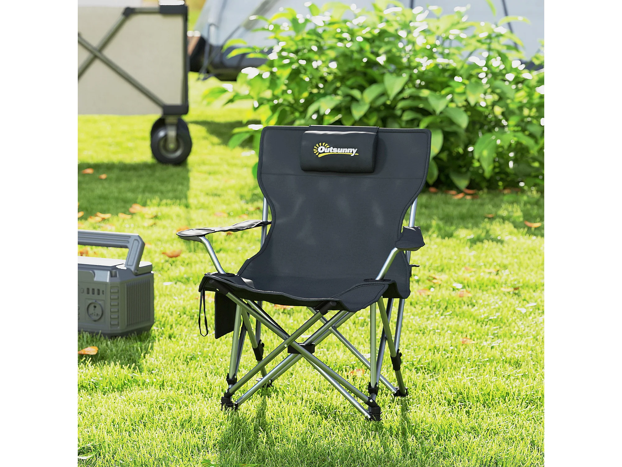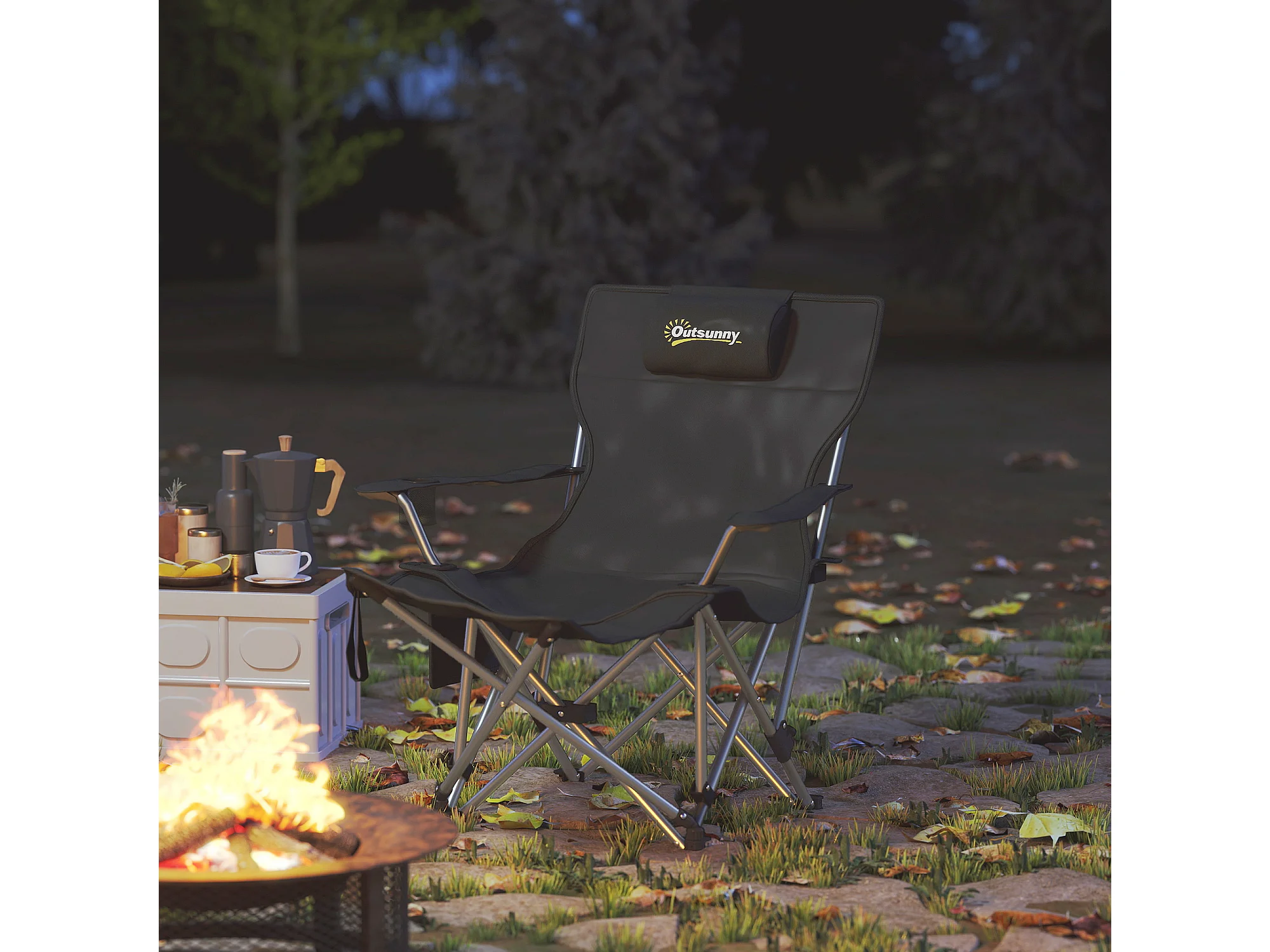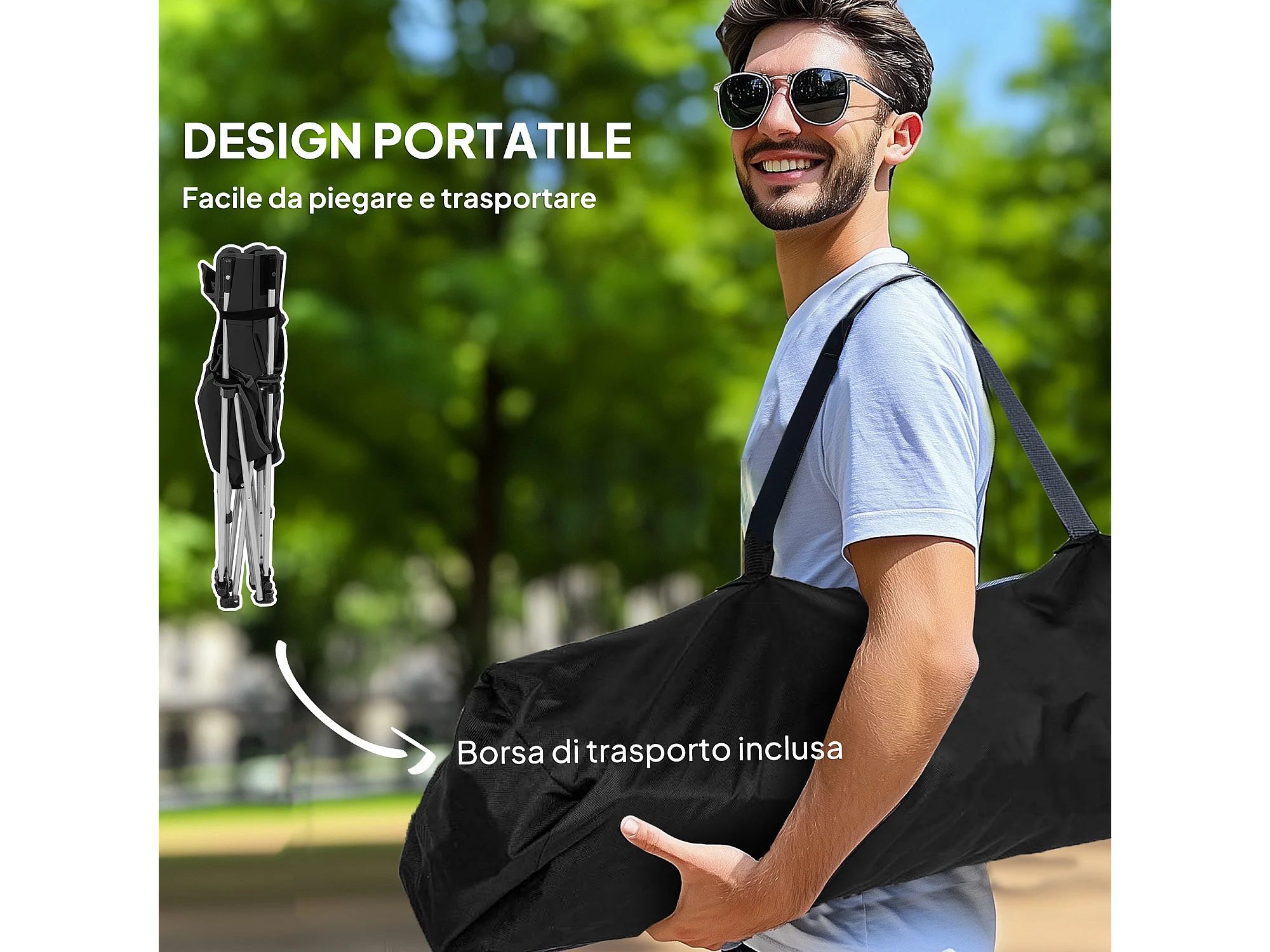 Sedia da campeggio pieghevole reclinabile con poggiapiedi nero
