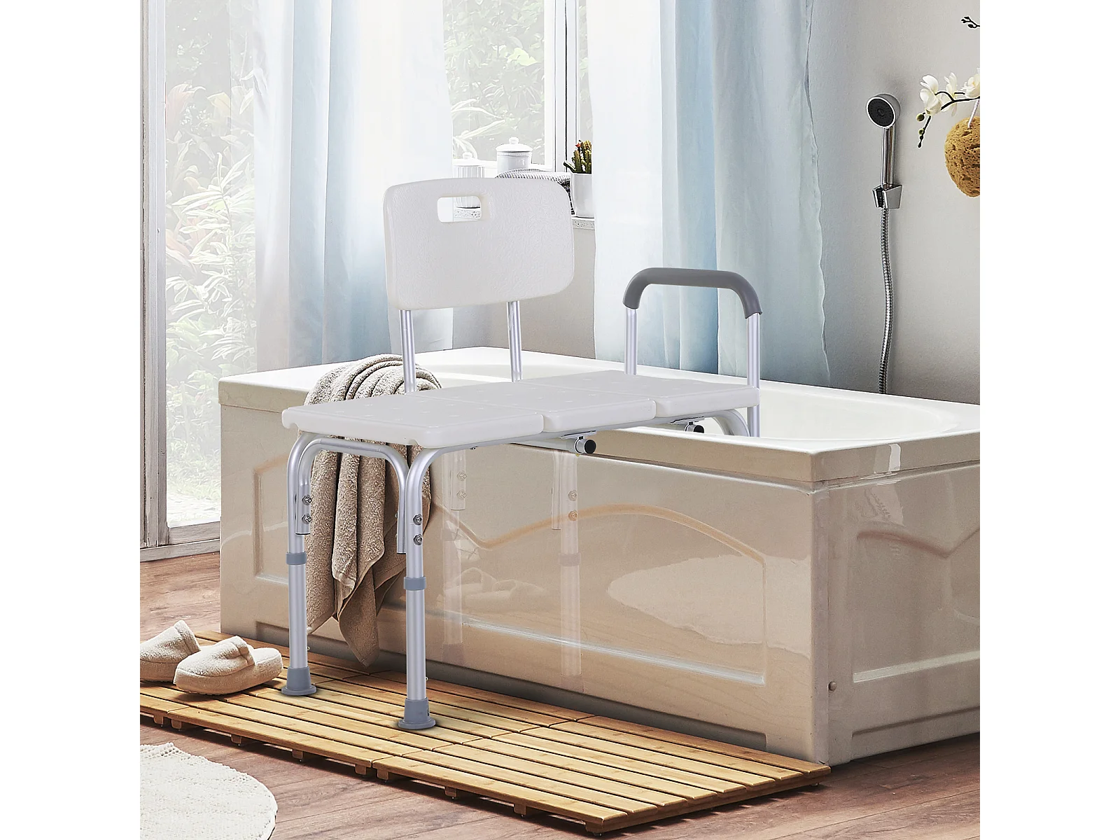 Sedia da doccia antiscivolo e regolabile su 6 livelli 74x53x80-92 cm
