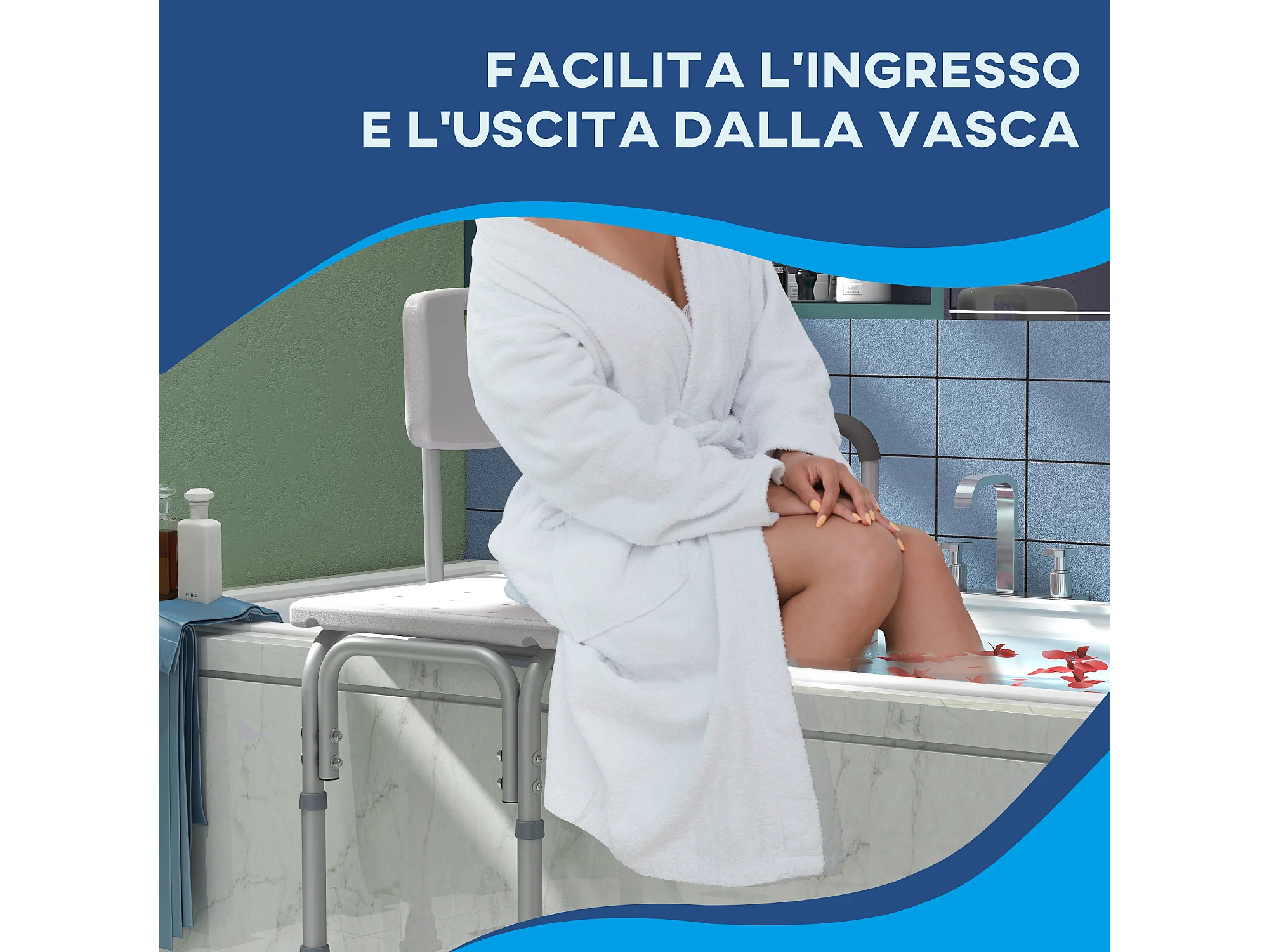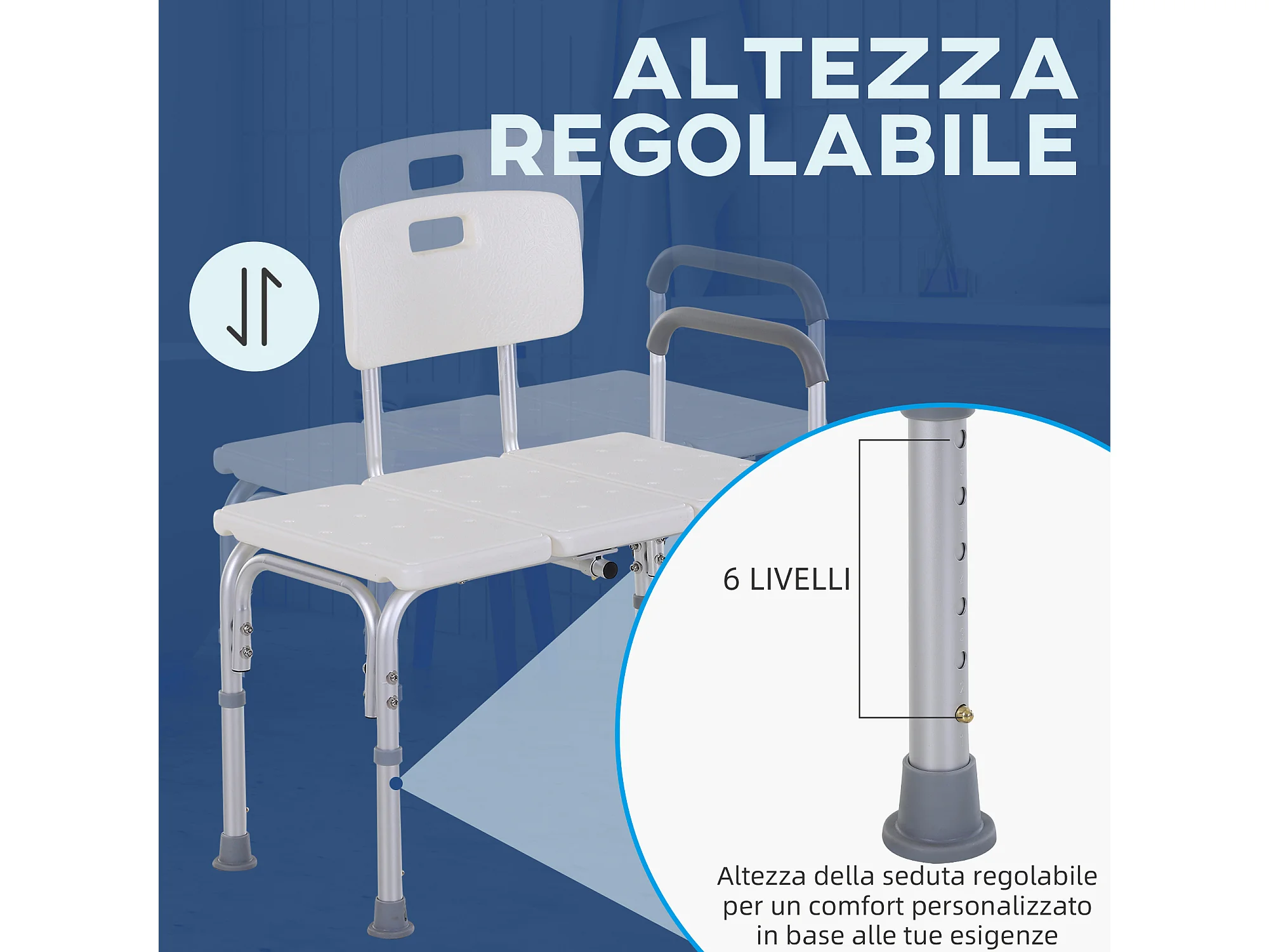 Sgabello per doccia con altezza regolabile in alluminio