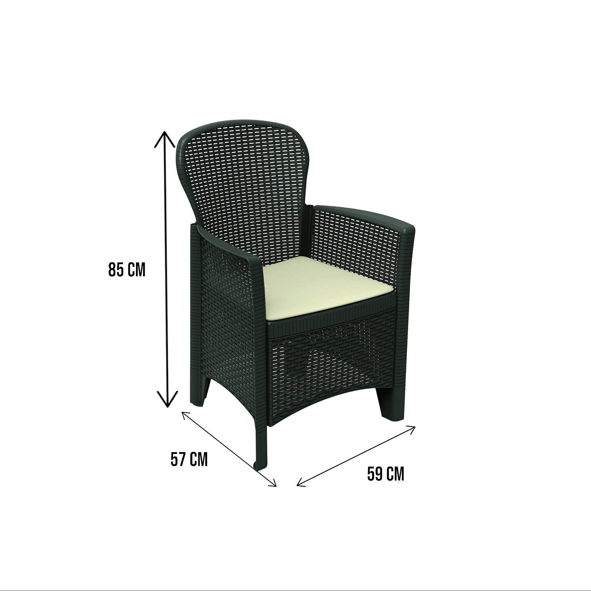 Sedia da esterno Como, Seduta da giardino, Poltrona outdoor effetto rattan, 100 % Made in Italy, 60x58h89 cm, Antracite