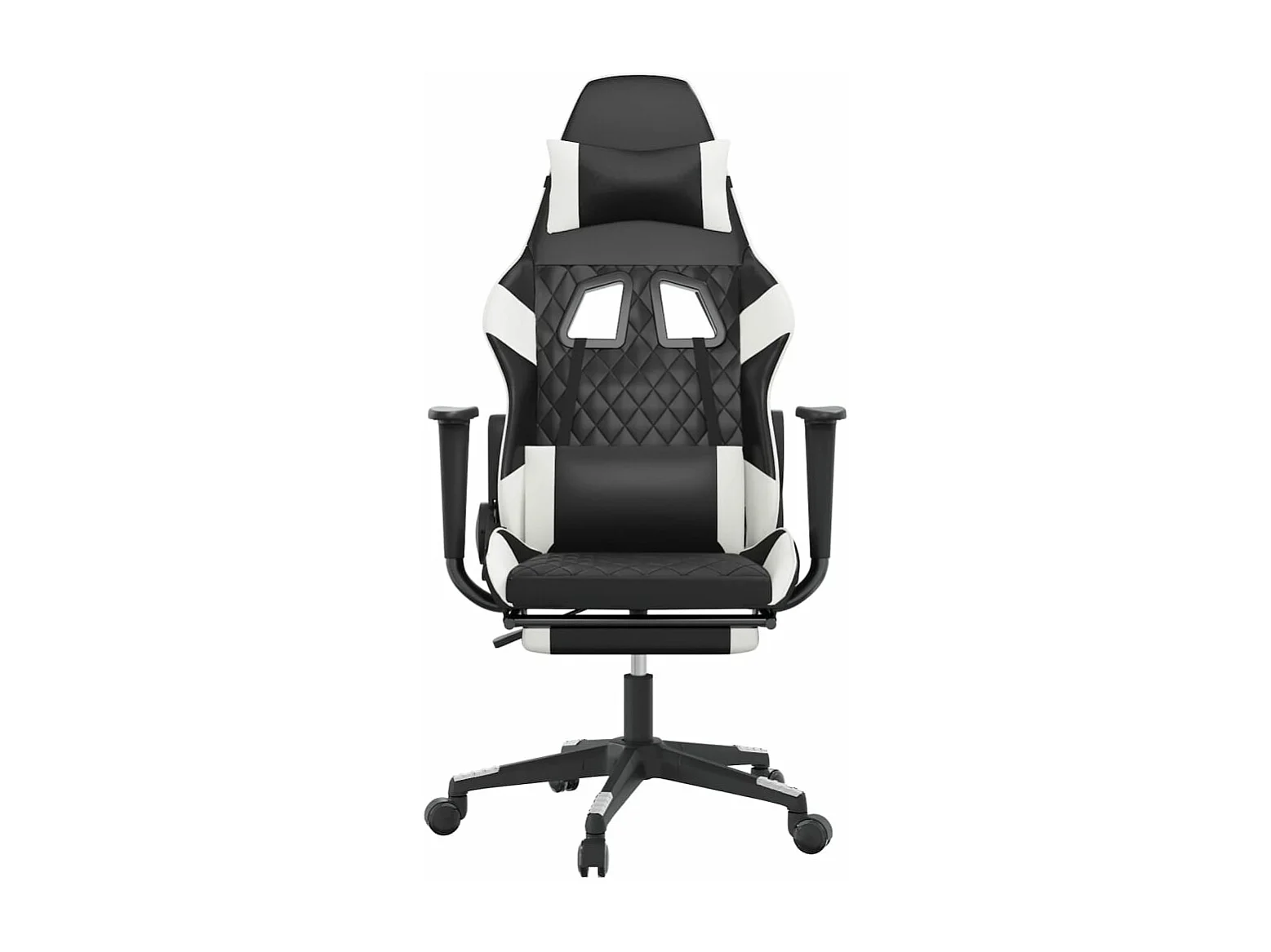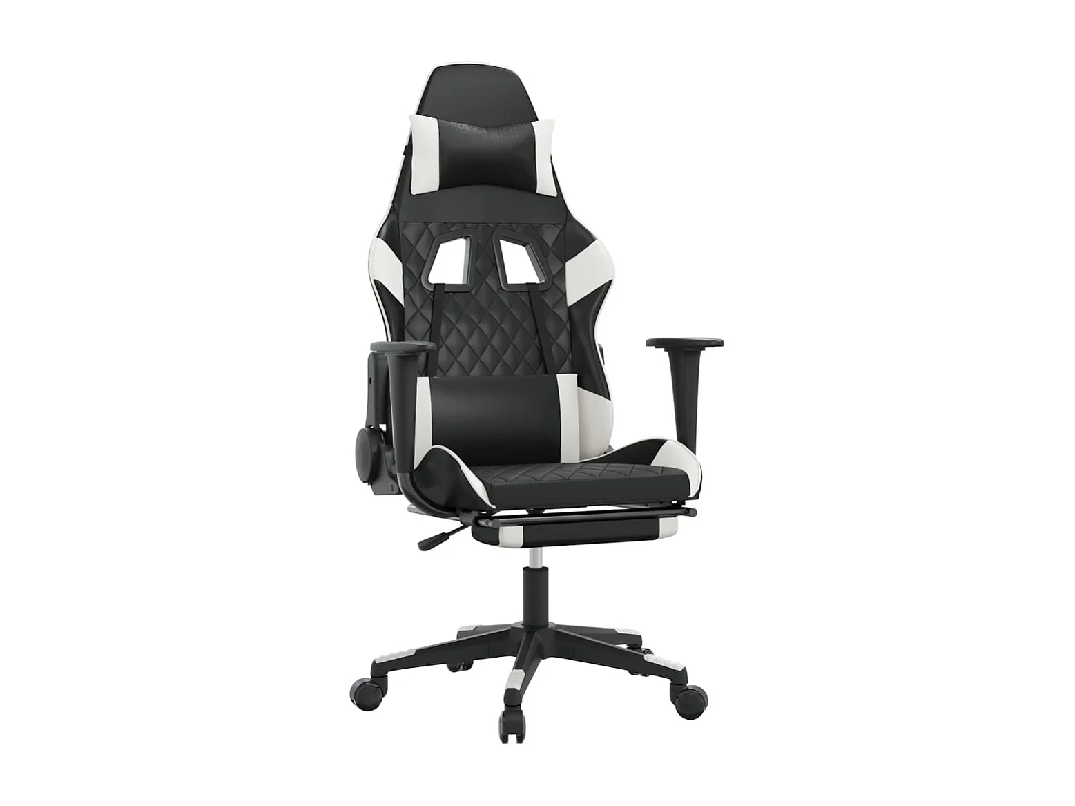 Sedia da gaming con poggiapiedi Ecopelle bianca e nera