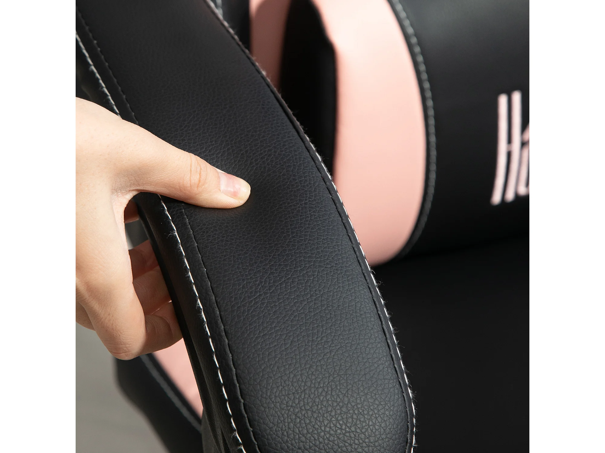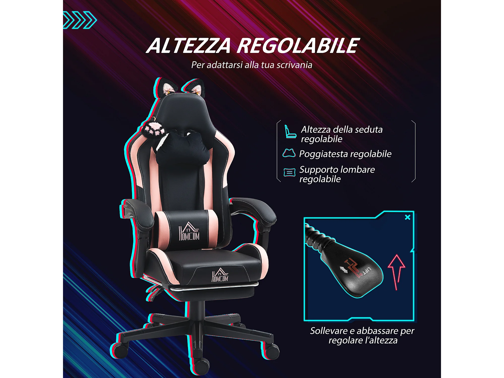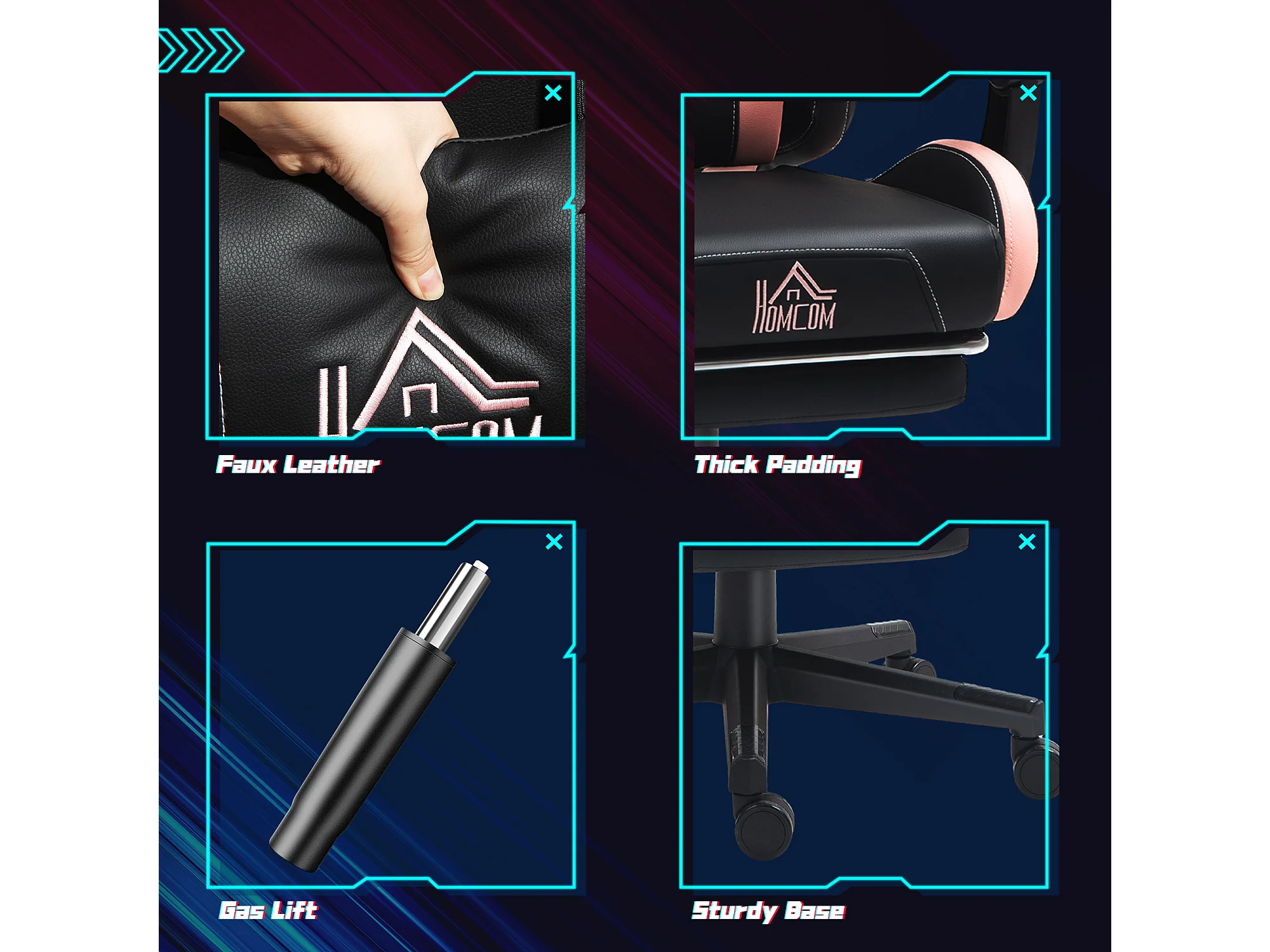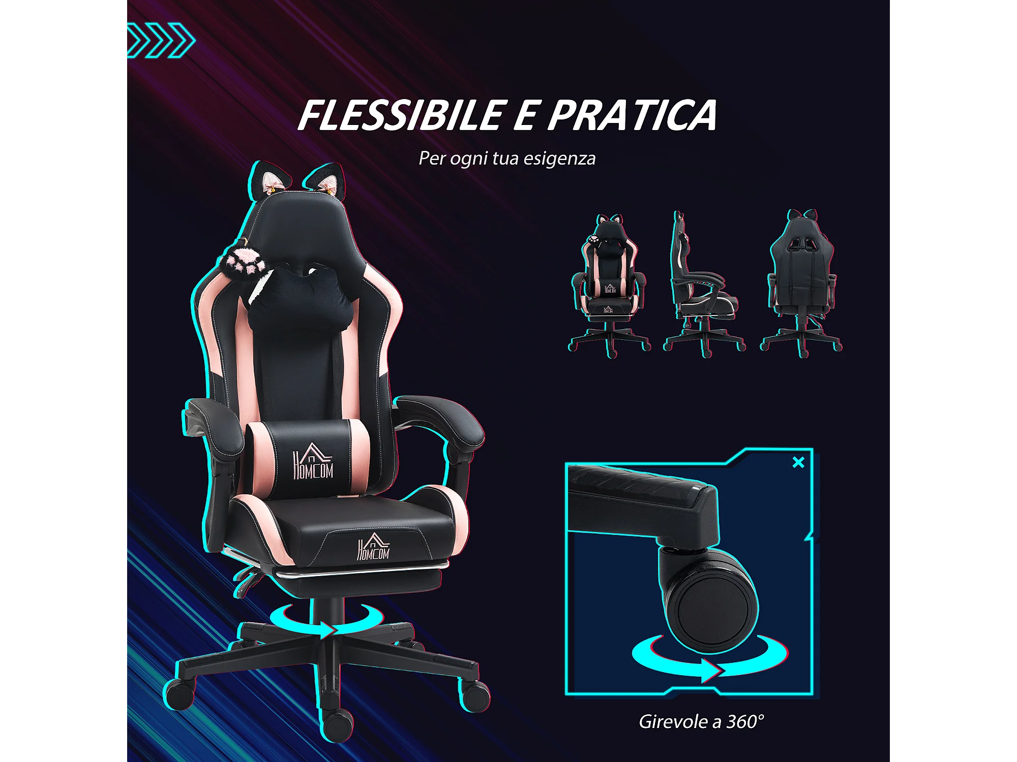 Sedia da gaming reclinabile con poggiapiedi e cuscini rosa e nero