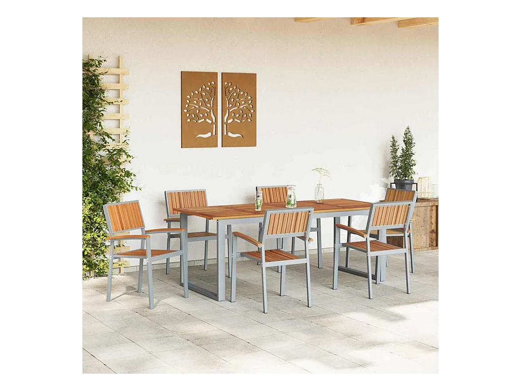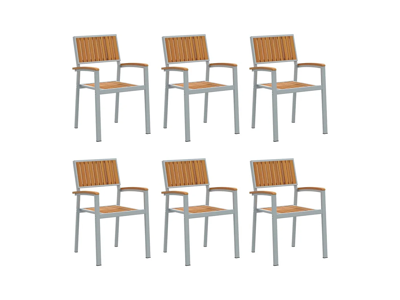 Set di 6 sedie da giardino in legno massello di acacia marrone