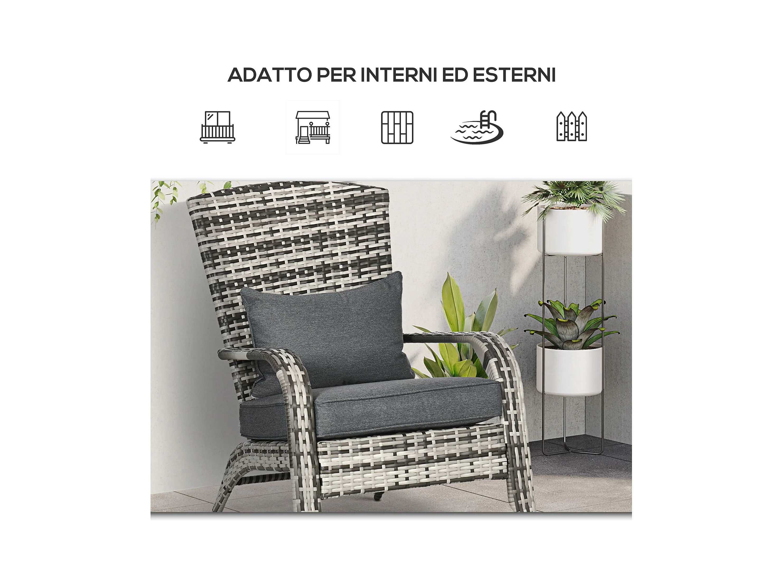 Sedia da giardino adironrack in rattan e acciaio grigio