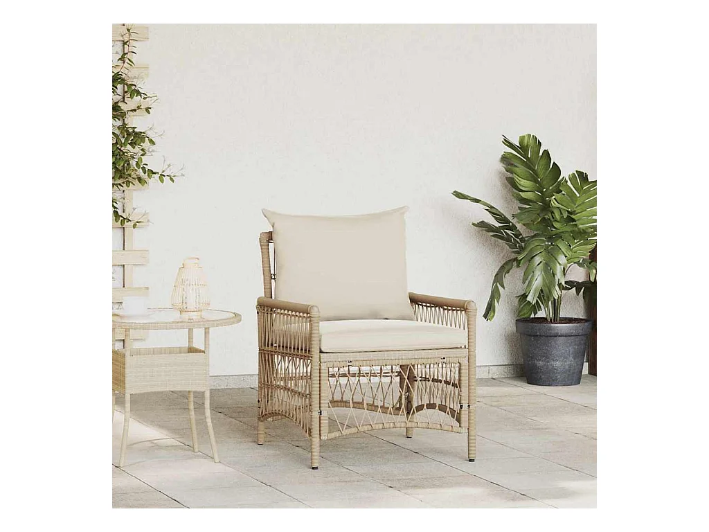 Sedia da giardino reclinabile con cuscini in vimini di resina beige