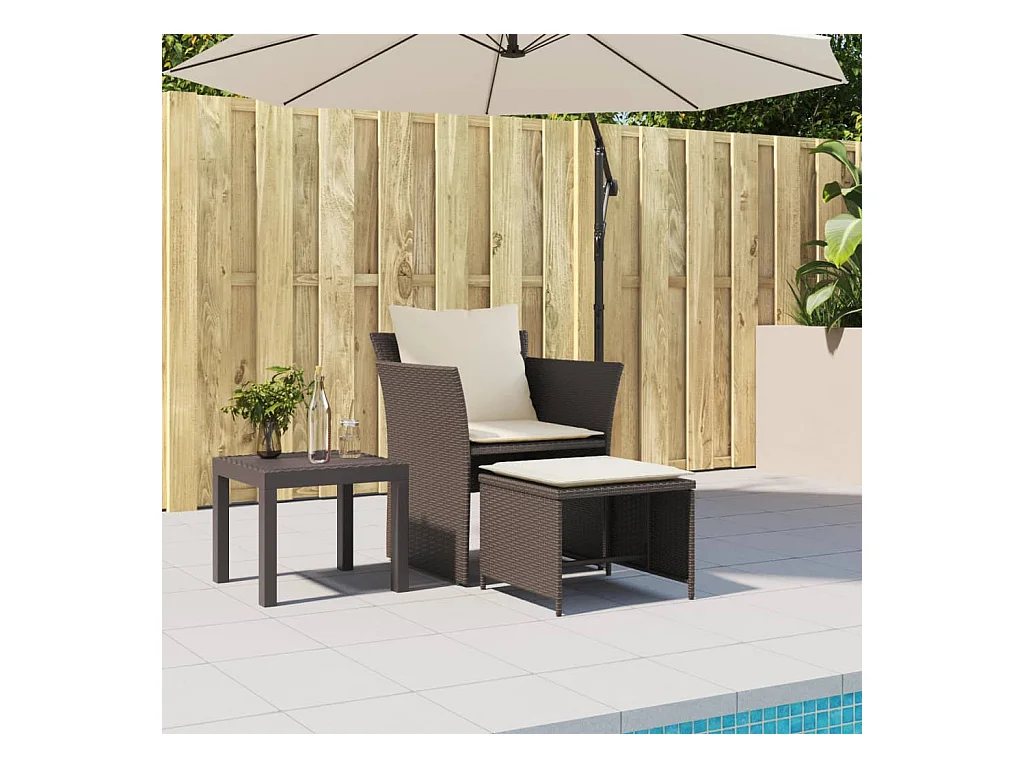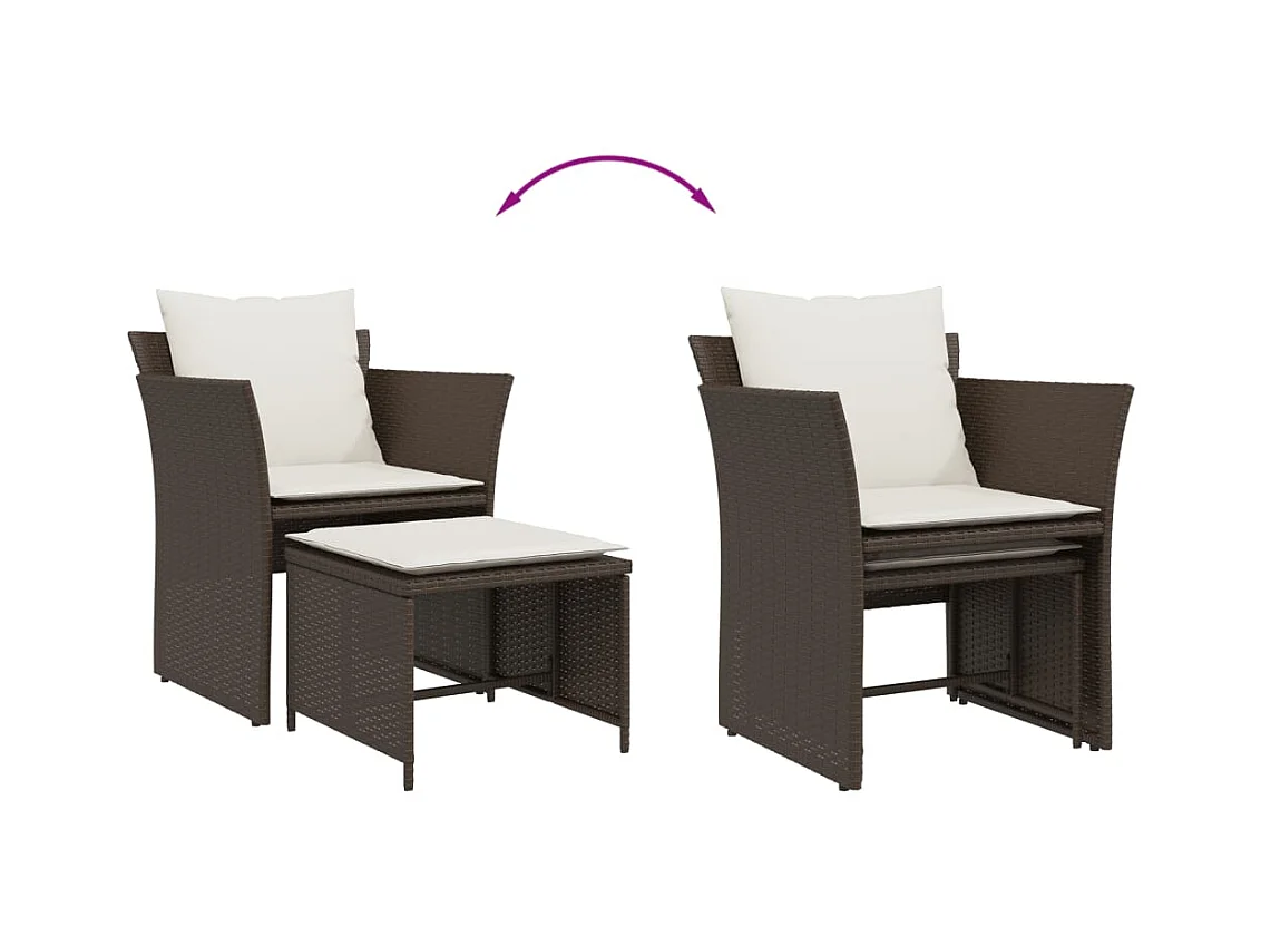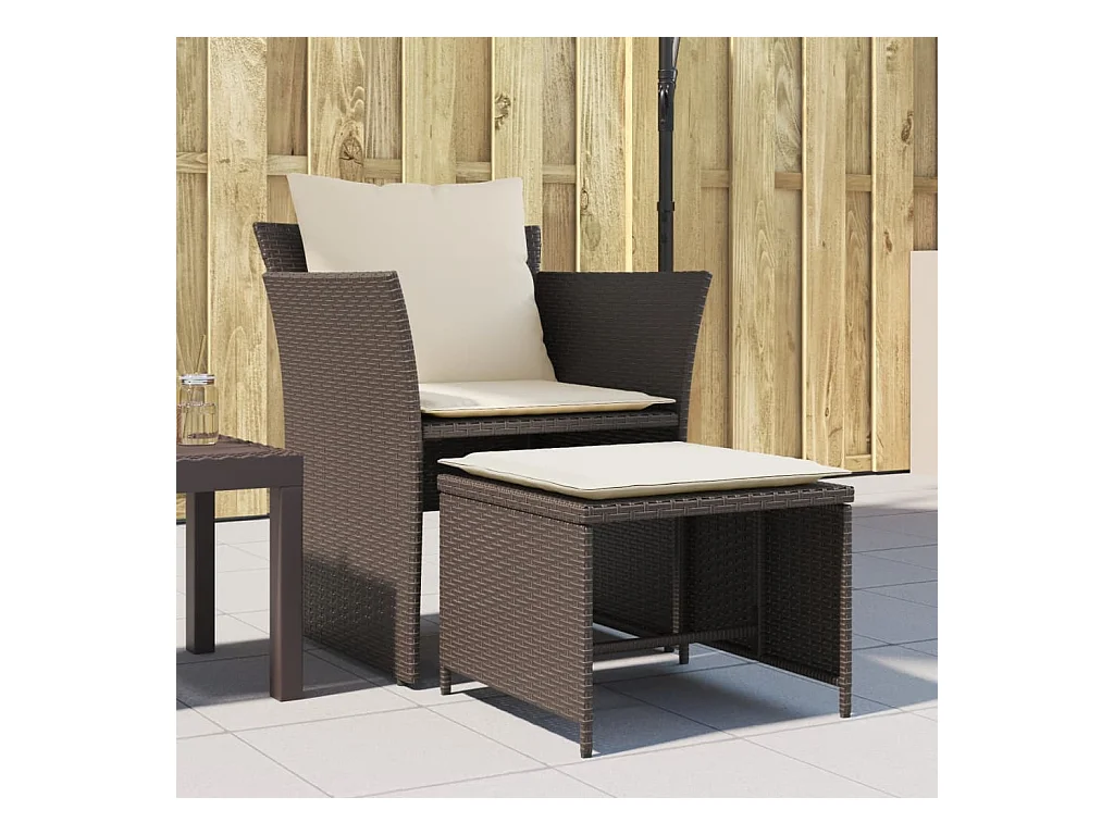Sedia da Giardino con Poggiapiedi in Polyrattan Marrone