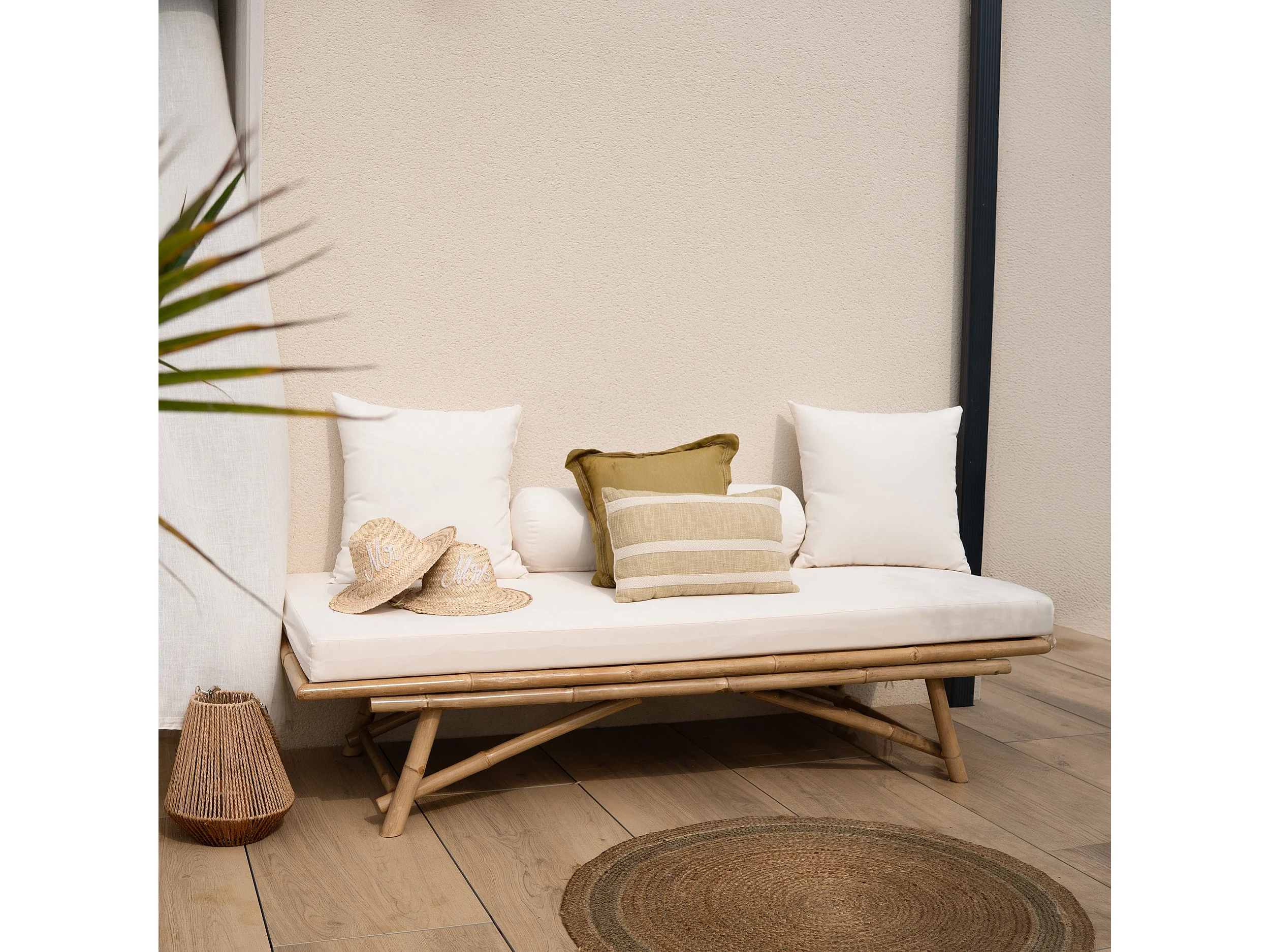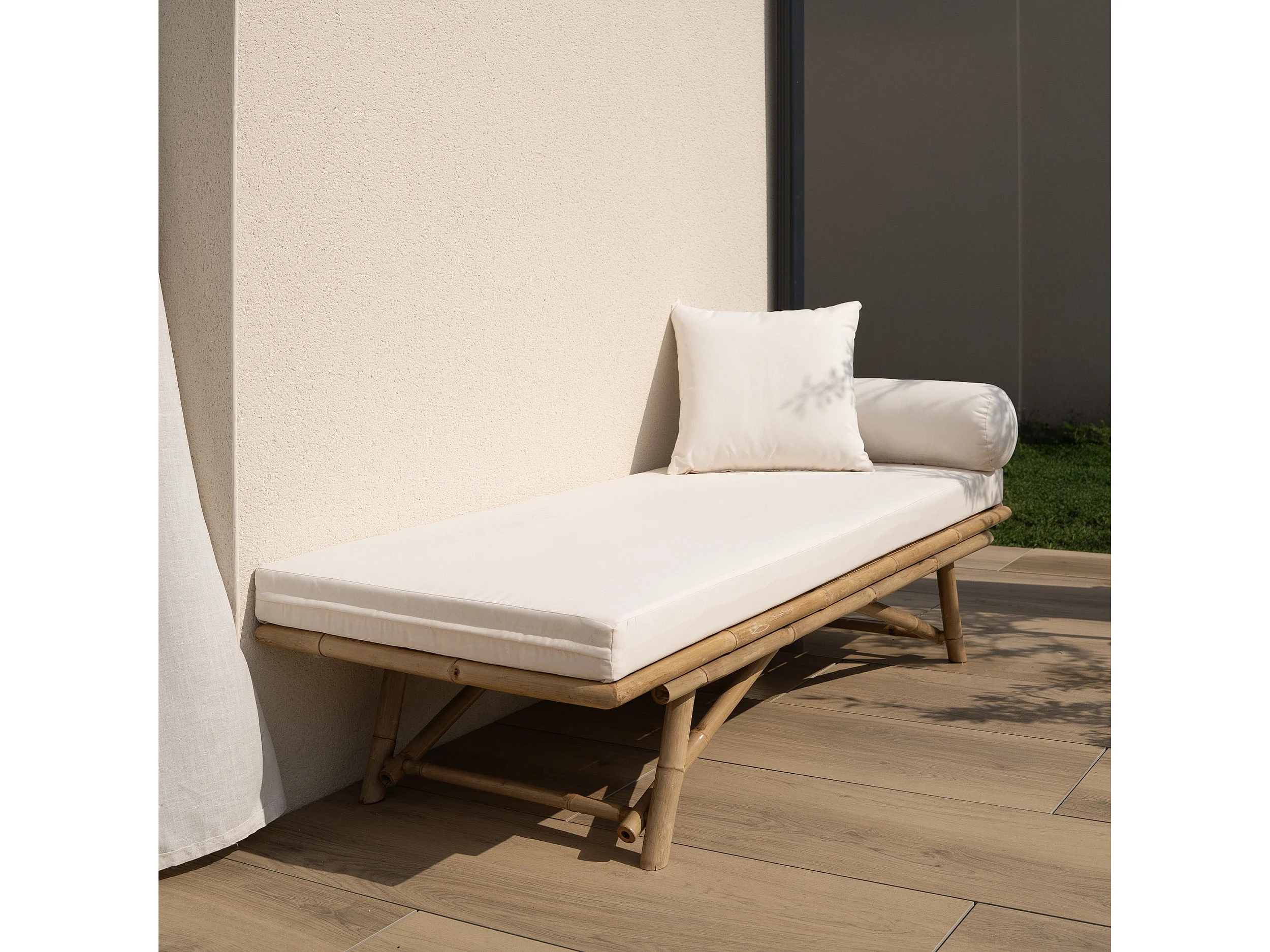 Sedia da giardino in bambù con materasso bianco - Vadella