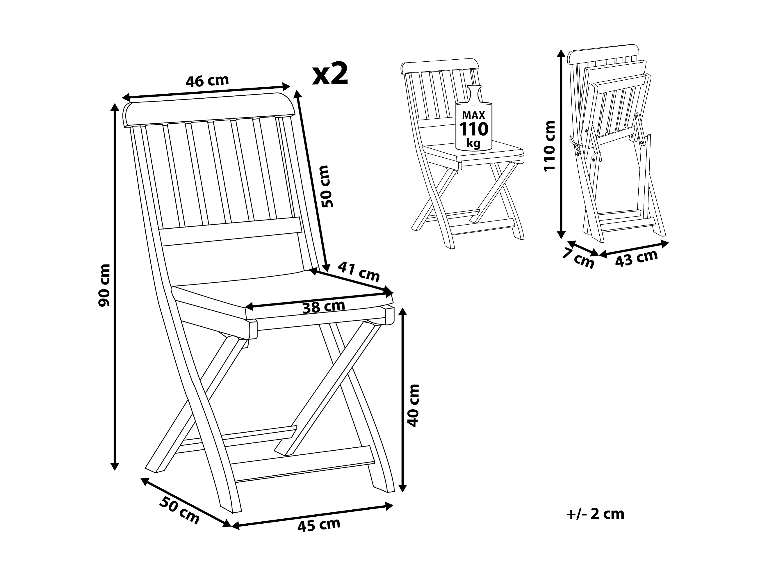 Set di 2 sedie da giardino con cuscini CENTO Legno d'acacia Marrone