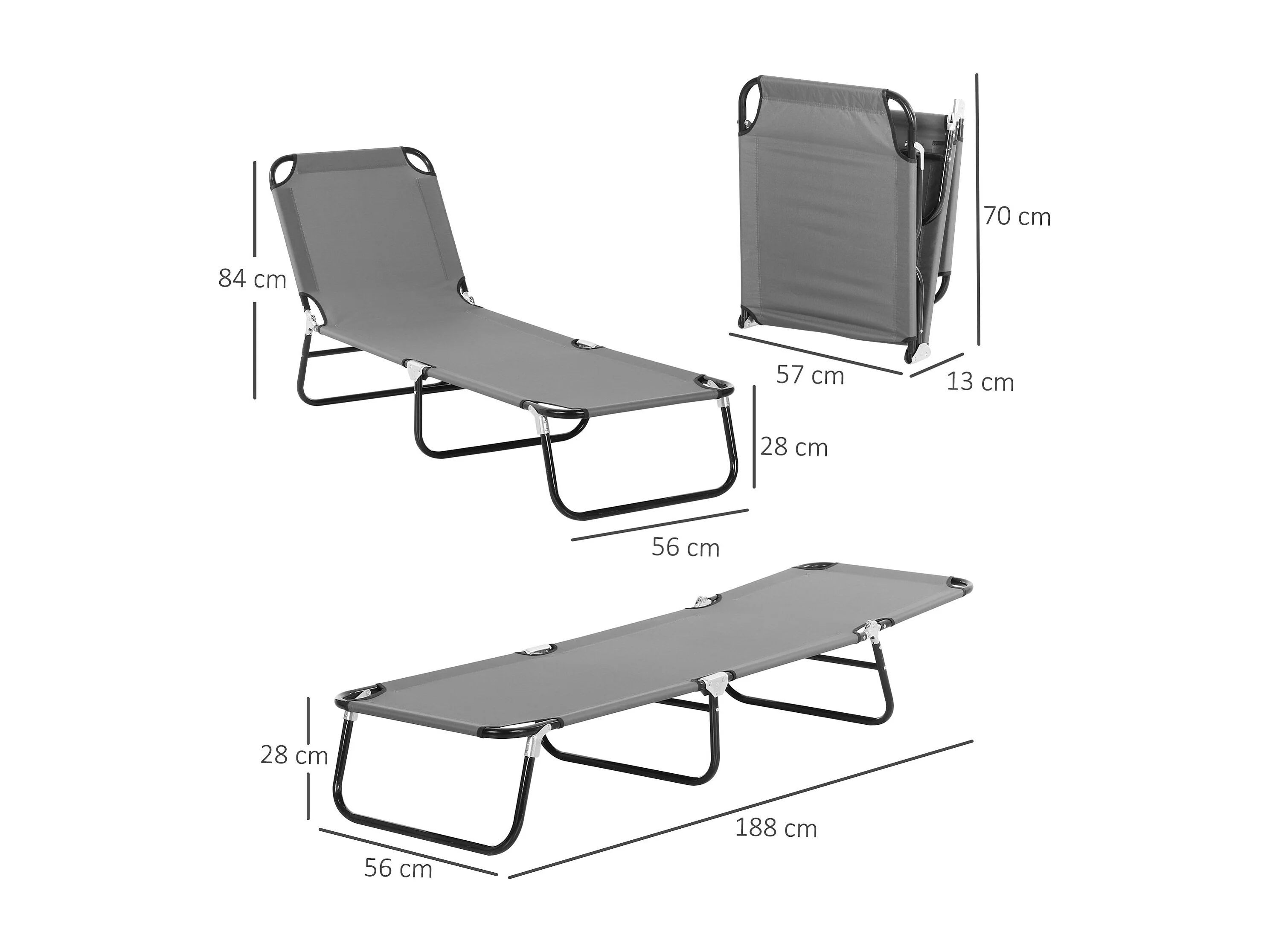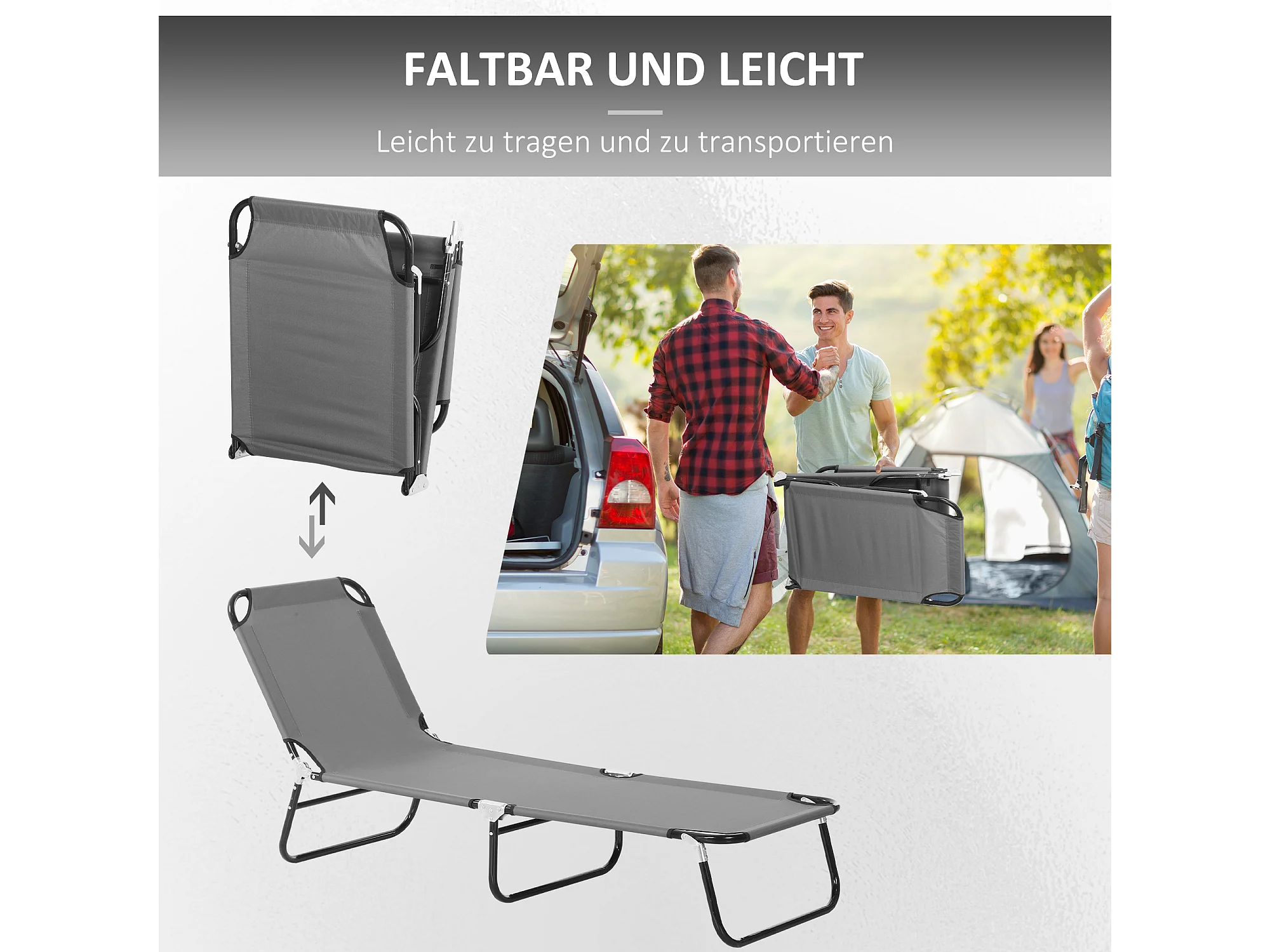 Sedia da giardino pieghevole con schienale regolabile, acciaio, grigio (188x56x28cm)